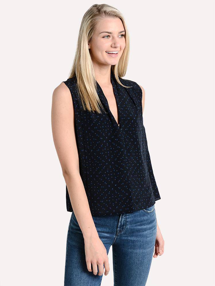 Gently gathered at the shoulders, the drape neck blouse is done in fluid silk. Balance its feminine feel with tailoring or structured denim.
