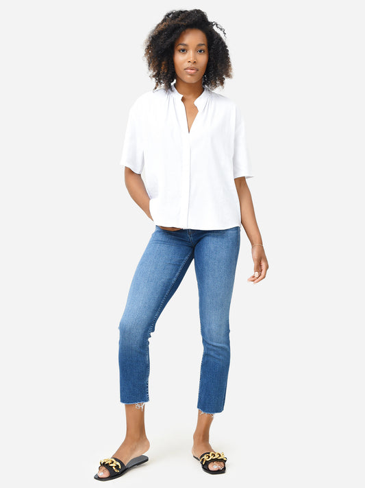 Vince Women's Short Sleeve Shirred Band Collar Blouse