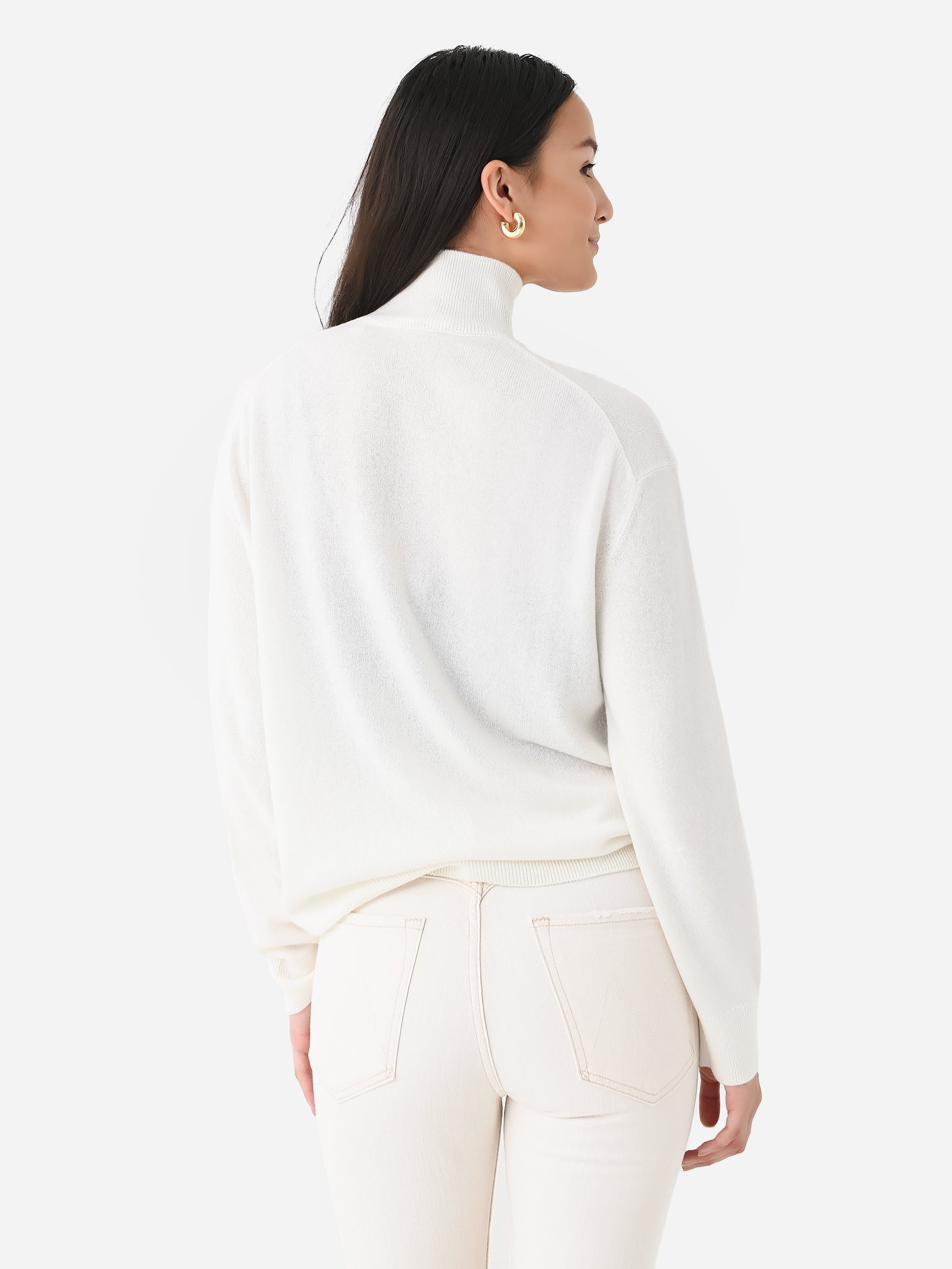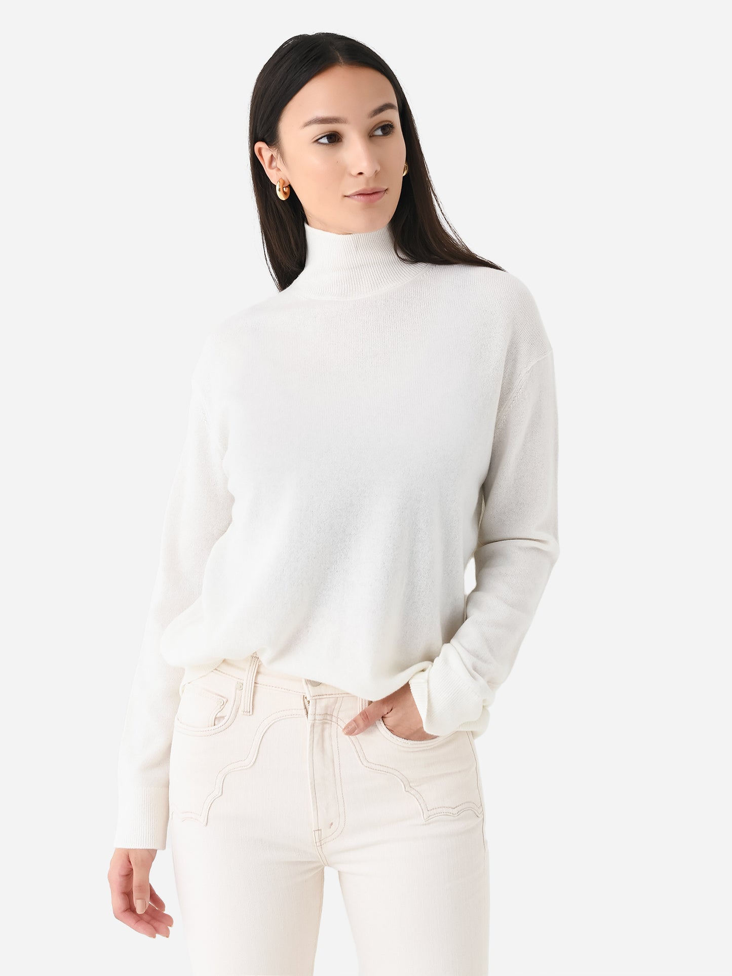 Ultra-soft cashmere turtleneck sweater with an oversized silhouette.