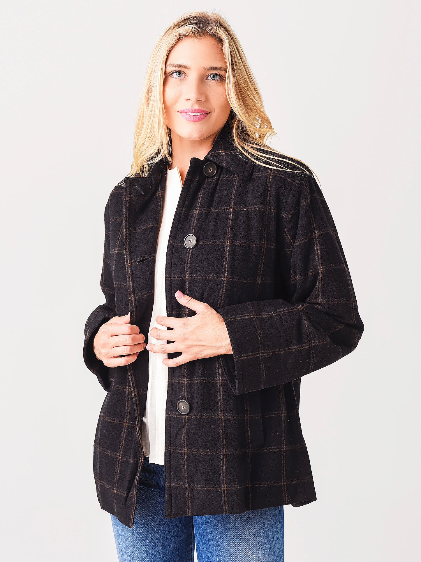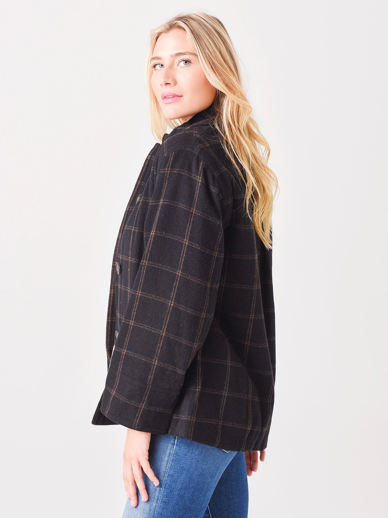 Women's Wool Cashmere Plaid Padded Shirt Jacket