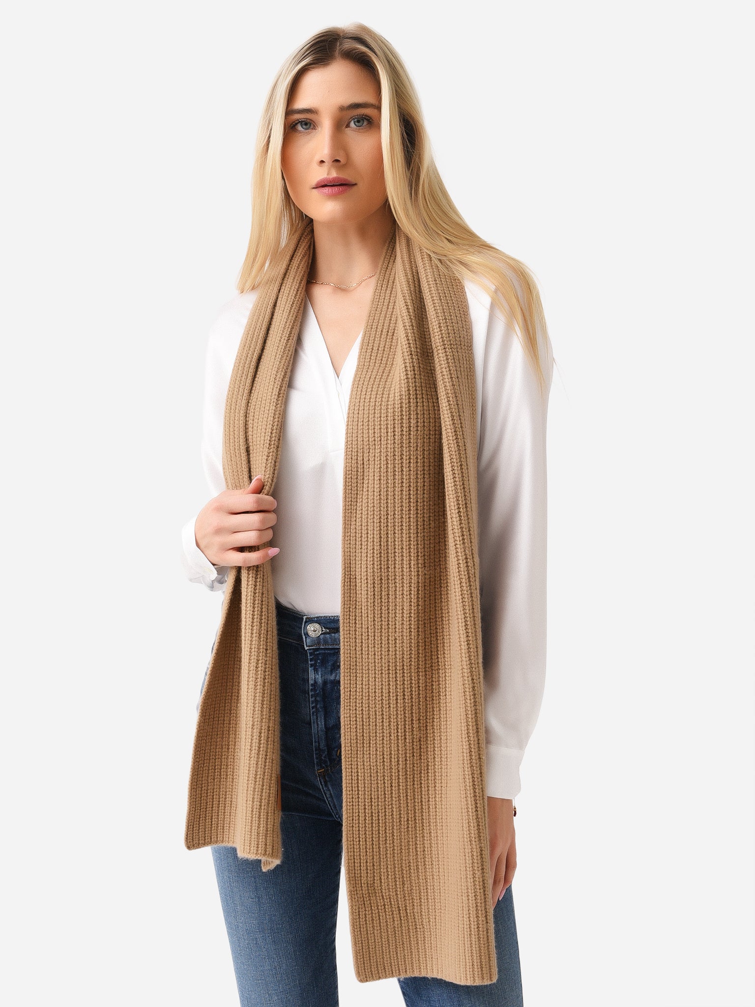 Women's Wool Cashmere Ribbed Shaker Stitch Scarf