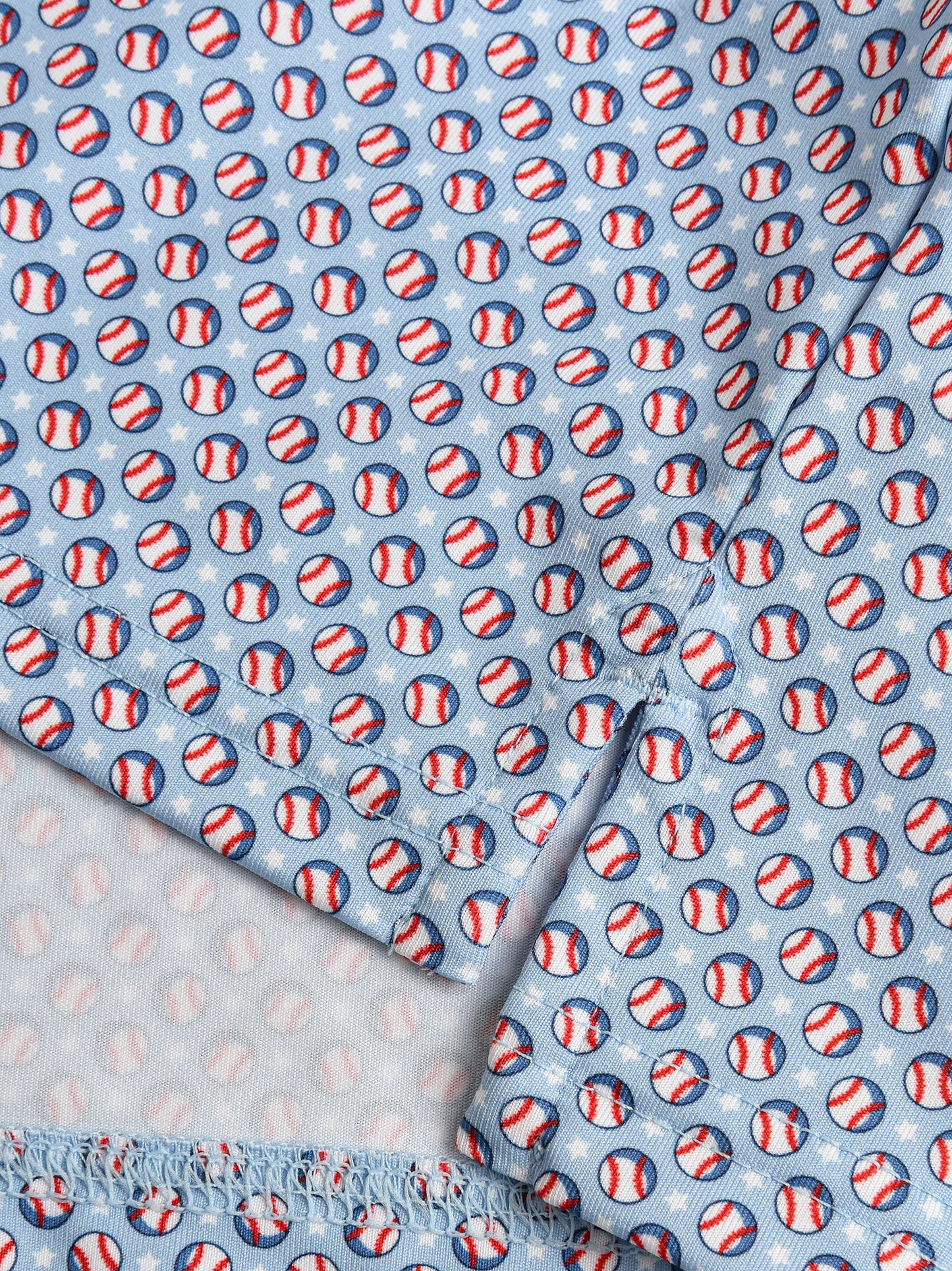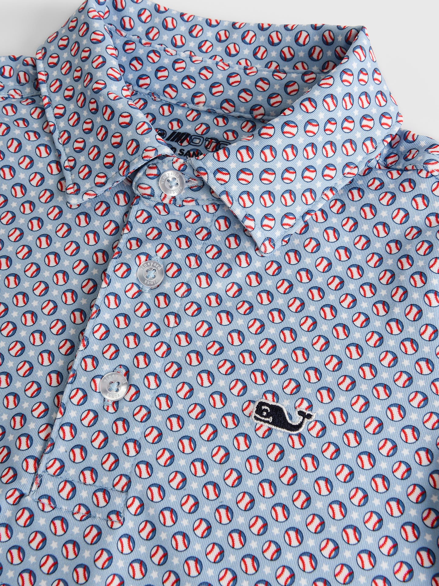 This signature polo features stretchy, lightweight, and wrinkle-free fabric with a custom print.
