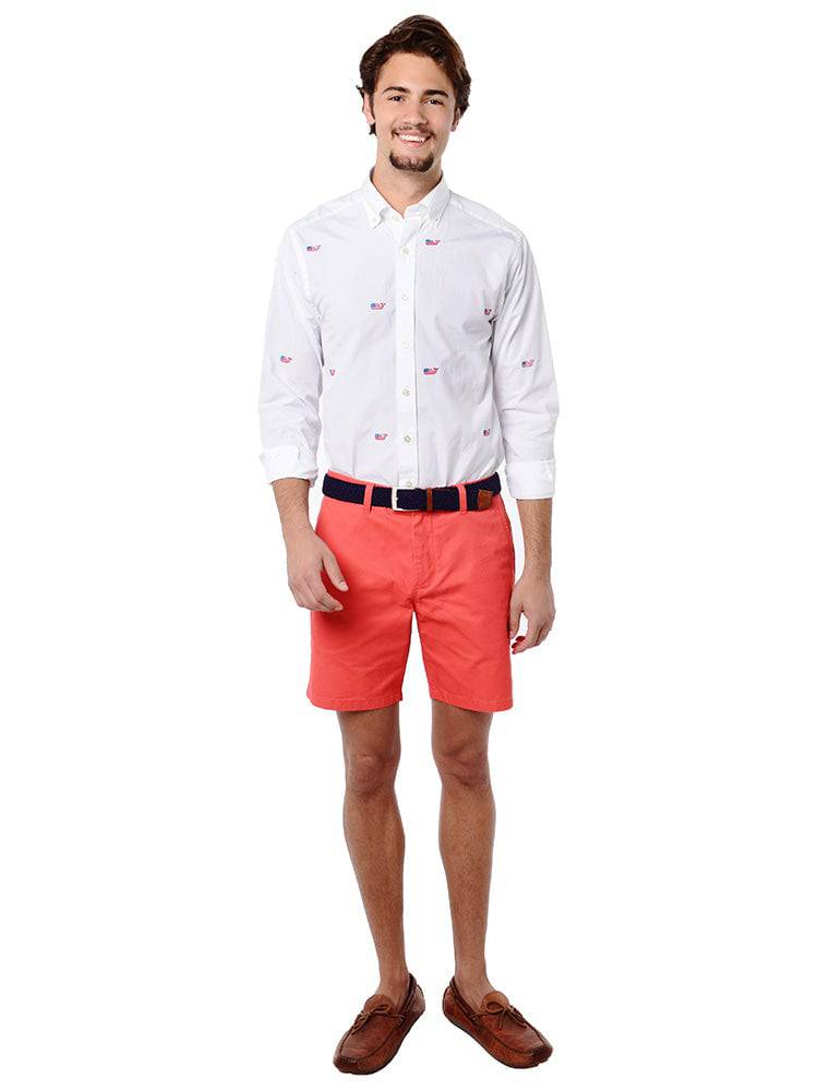 - Styled with Bonobos shorts Style # 15040, Peter Millar belt Style # MC00A60 and Trask loafers Style # 30-00256. Model is wearing size medium shirt, size 32 short and size medium belt.