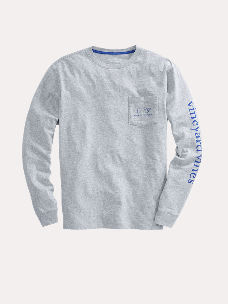 Take on the weekend in the Vineyard Vines Men's Long Sleeve Heather Vintage Whale Pocket Tee.