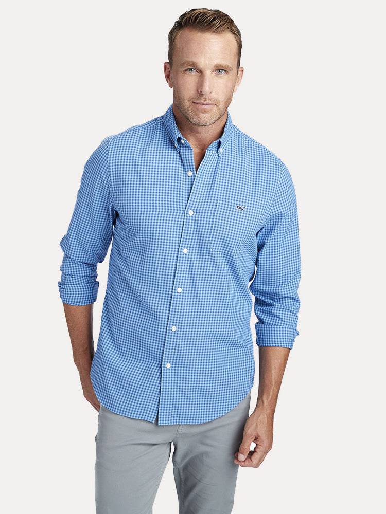Let the Vineyard Vines Men's Tradewinds Flannel Slim Tucker Shirt hang out of your quarter zip this season.