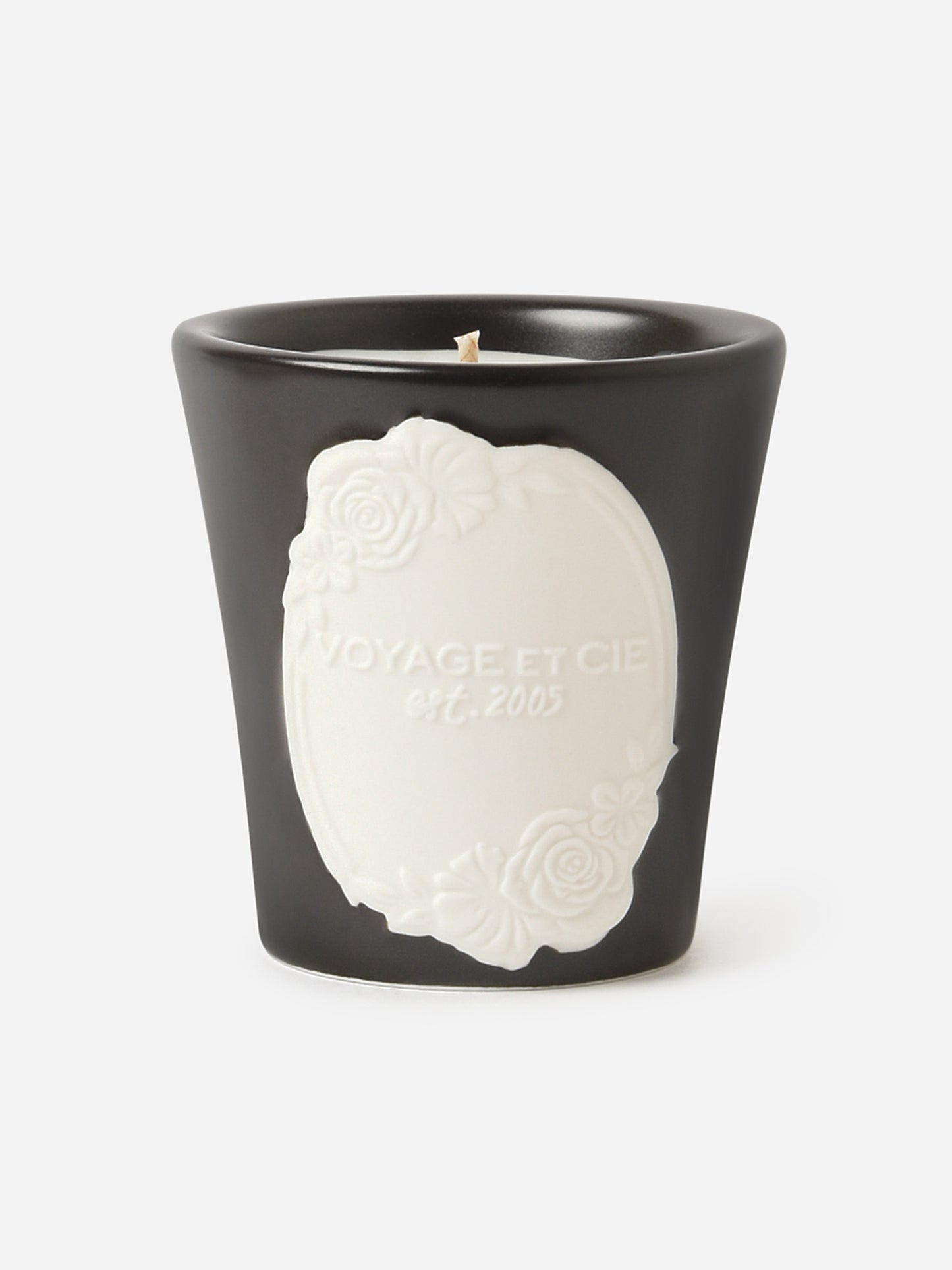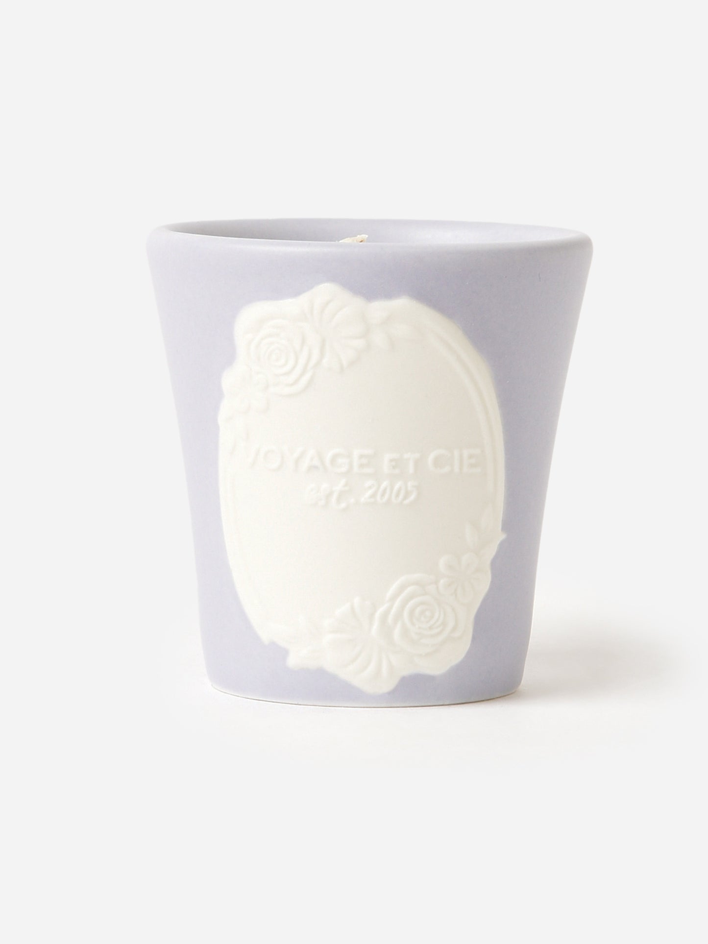 A single-wick candle made from an organic wax blend and poured into a namesake cameo vessel.