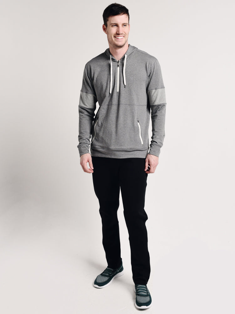 - Styled with Vuori Hoodie Style # V219. Model is wearing size medium top and pant.