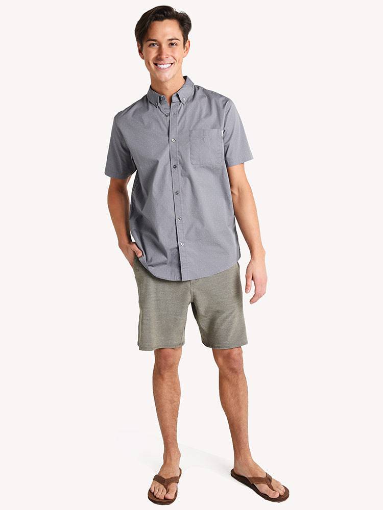 - Styled with Vuori shirt Style # V150 and Reef flip flops Style # RF002611. Model is wearing size medium shirt and short.