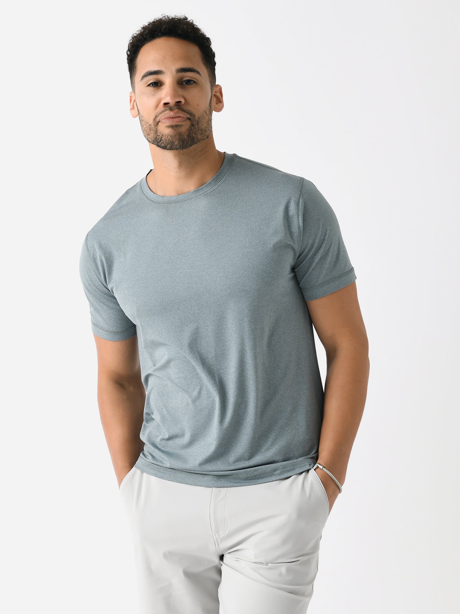 A highly breathable perforated performance tee made with comfortable flatlock seams.