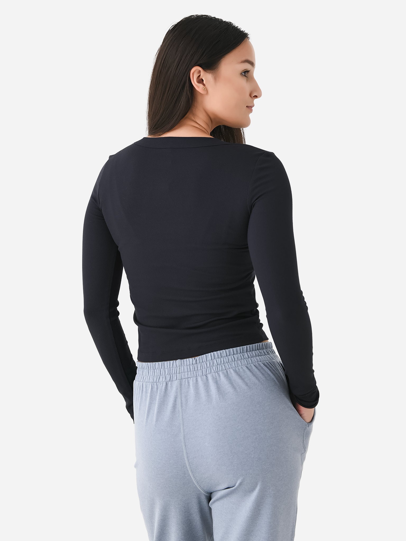 Slim-fitting long-sleeve active tee made from ultra-soft ribbed performance fabric.