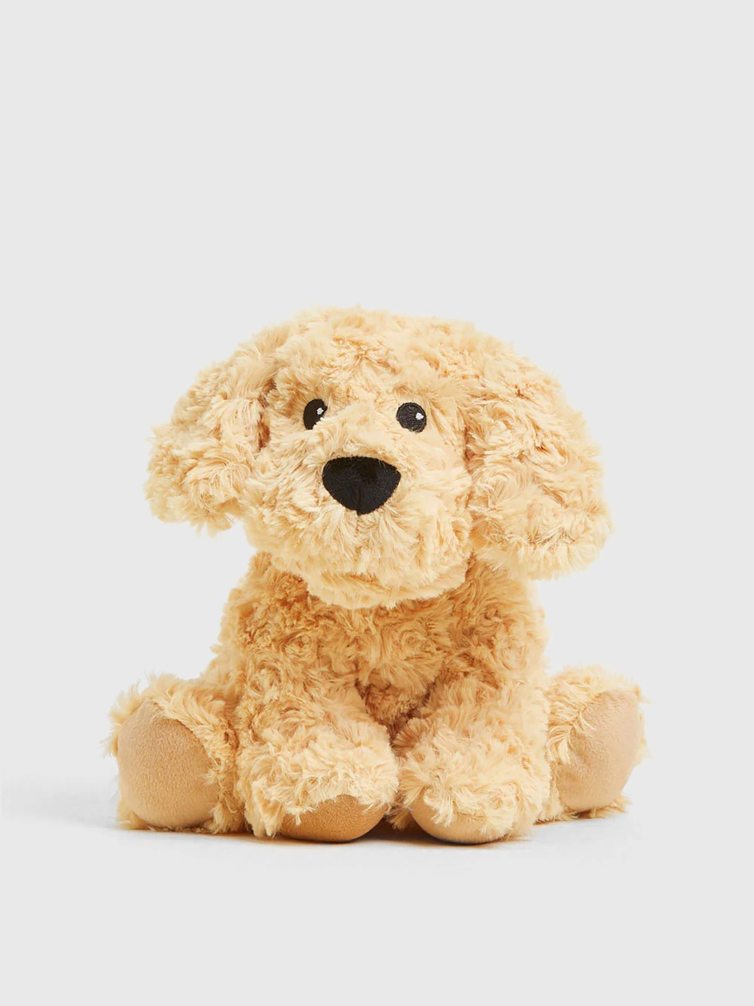 This cuddly dog plush is filled with natural grains and French lavender. It is fully microwavable and perfectly weighted to provide comfort and warmth.