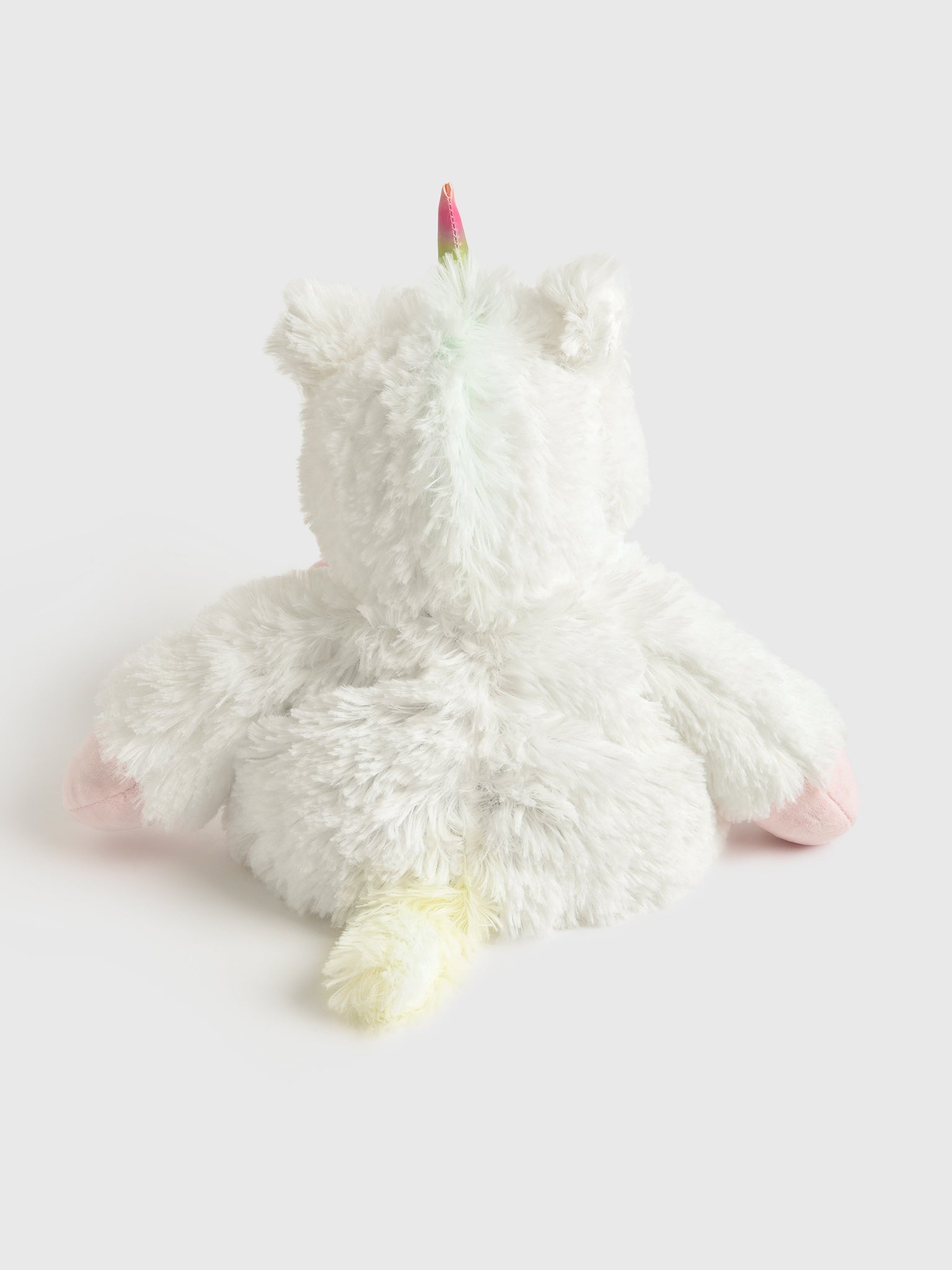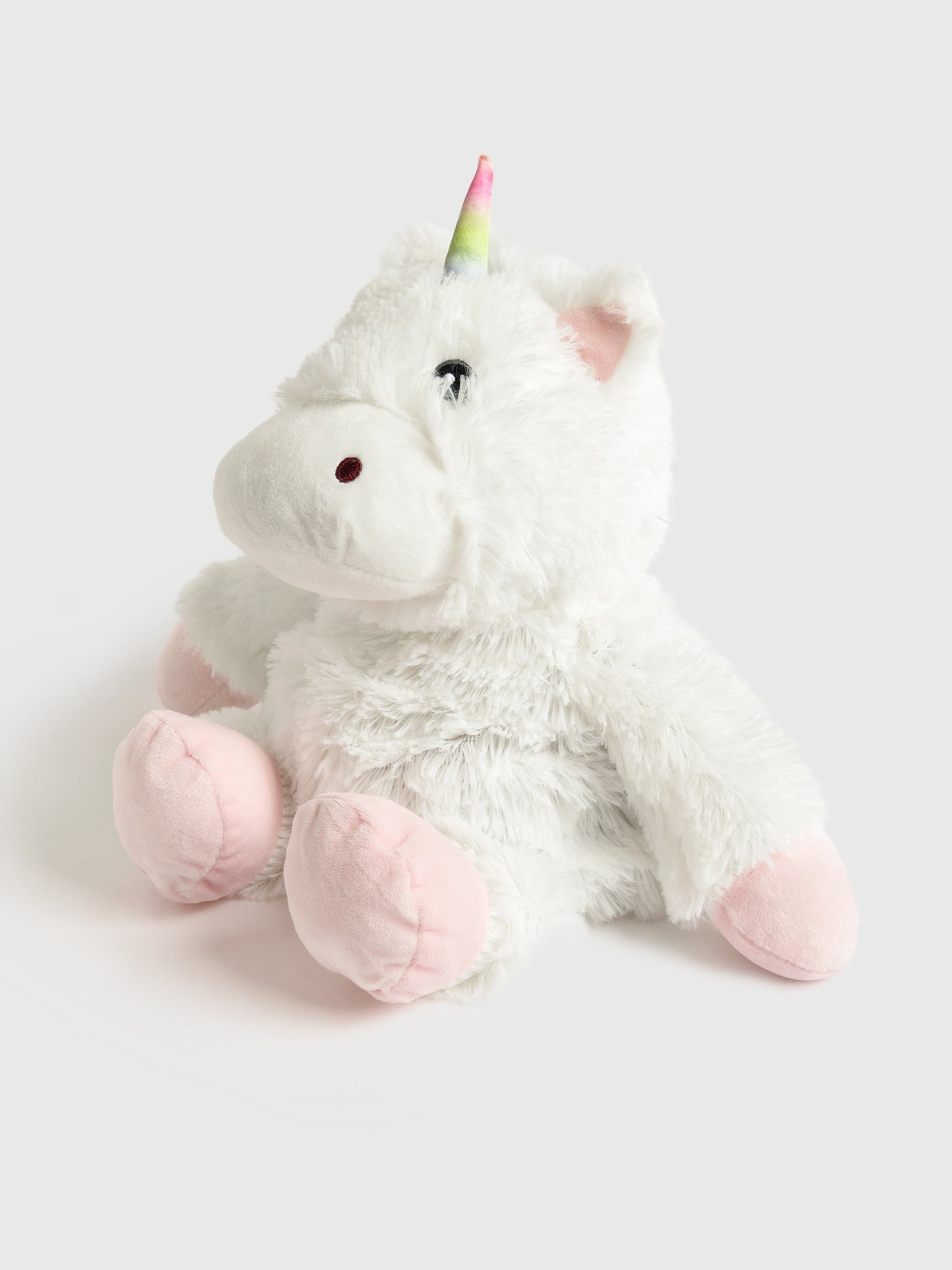 This adorable unicorn plush is filled with natural grains and French lavender. It is fully microwavable and perfectly weighted to provide comfort and warmth.