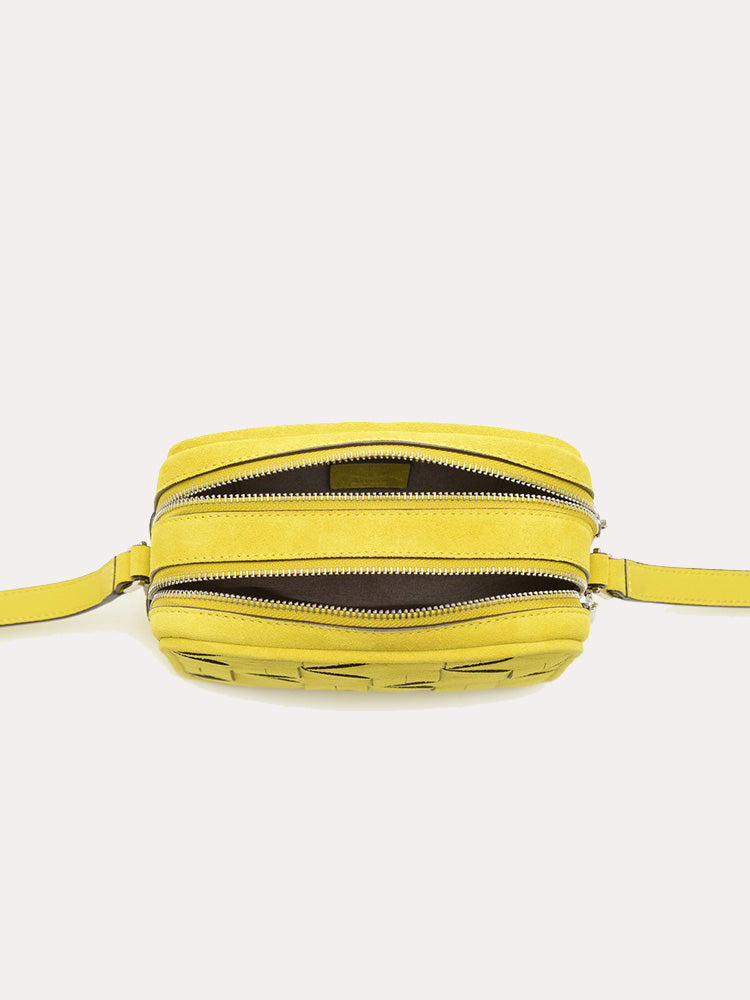 - Handwoven suede leather with matching trim