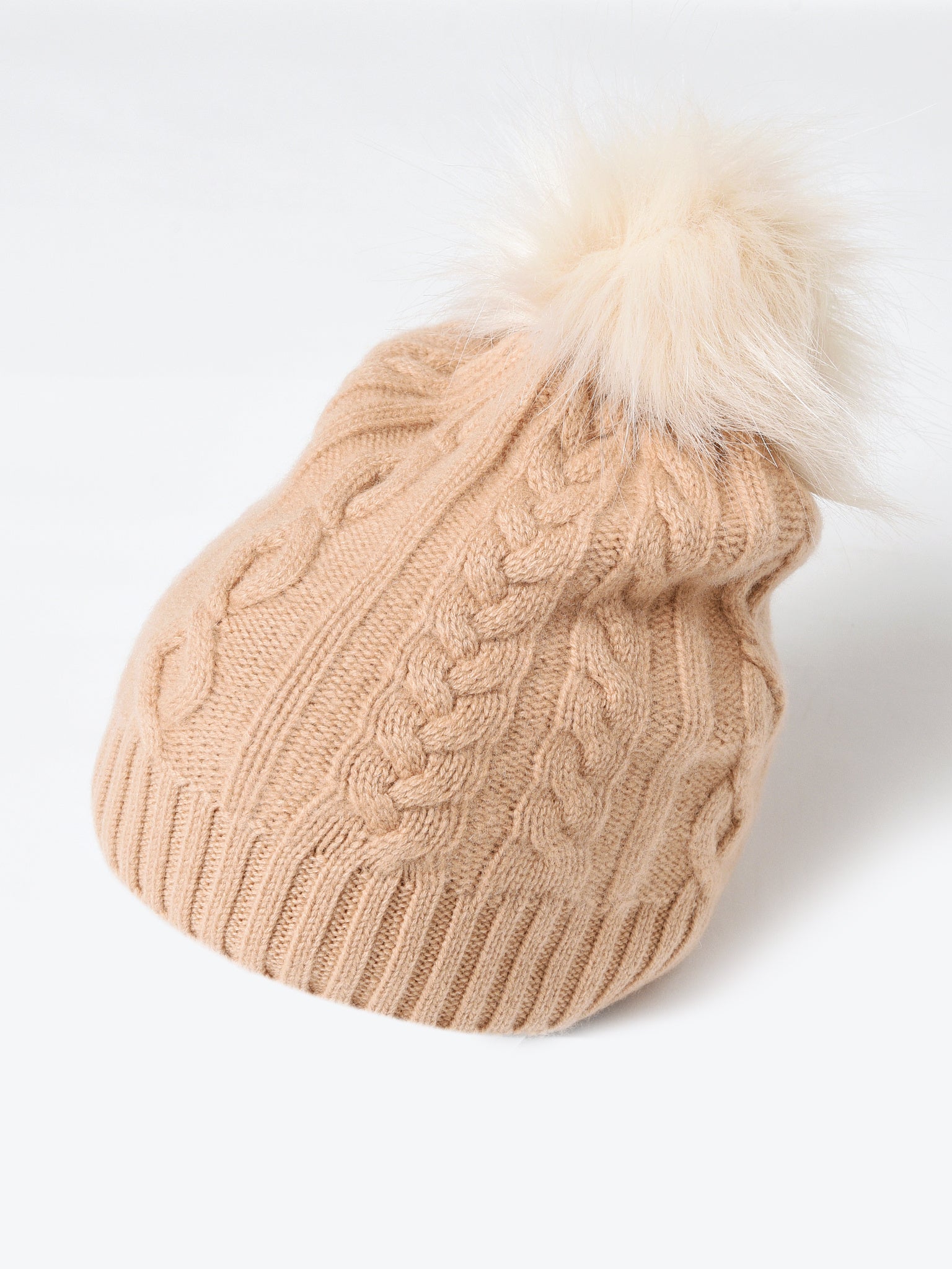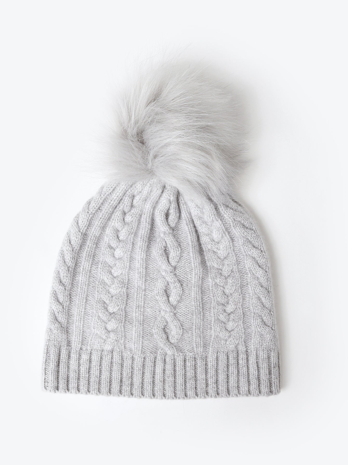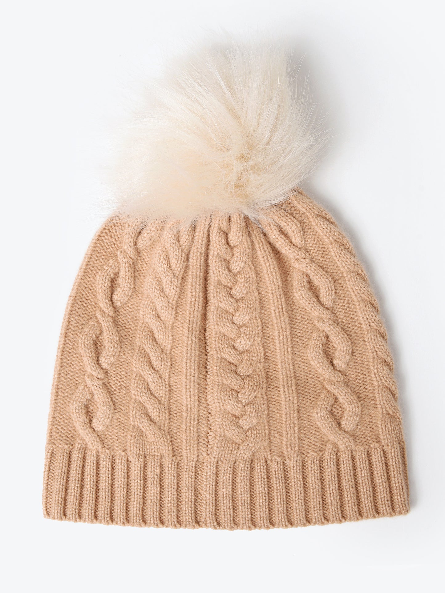 Add a poof of fun to your noggin-warmer with the fun and cozy White + Warren Cable Beanie With Faux Fur Pom.
