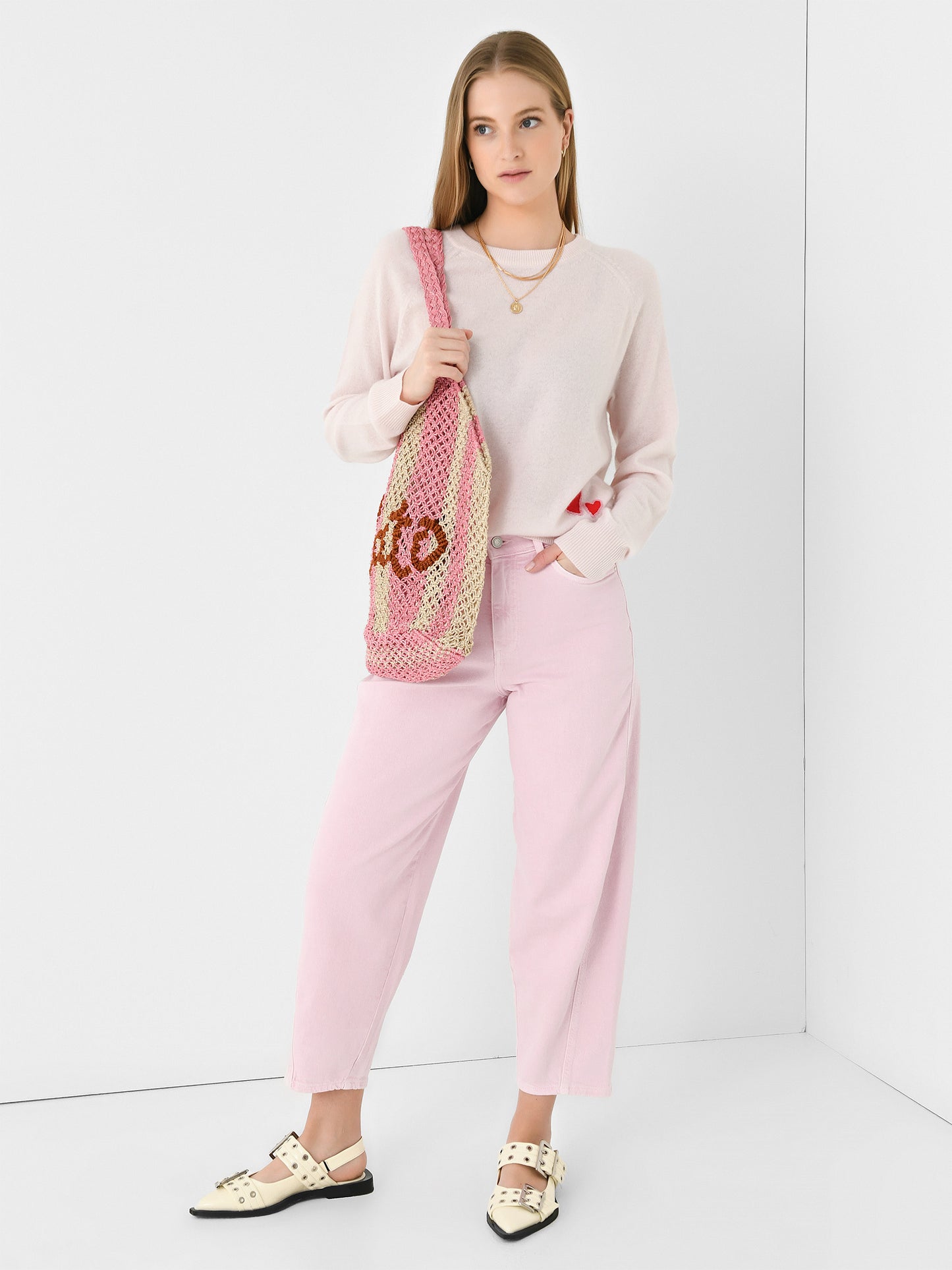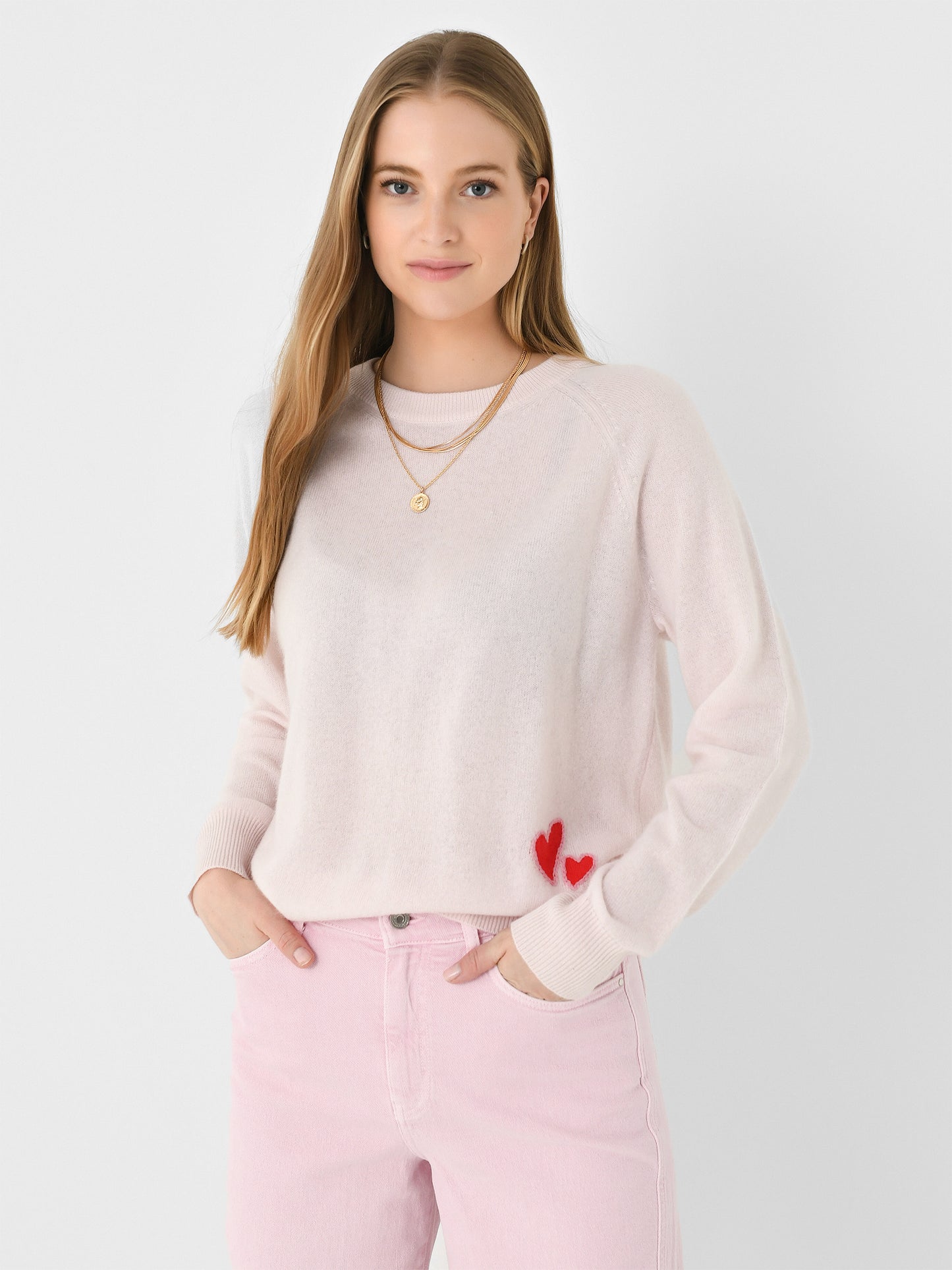 An ultra-soft cashmere sweater featuring two embroidered red hearts.