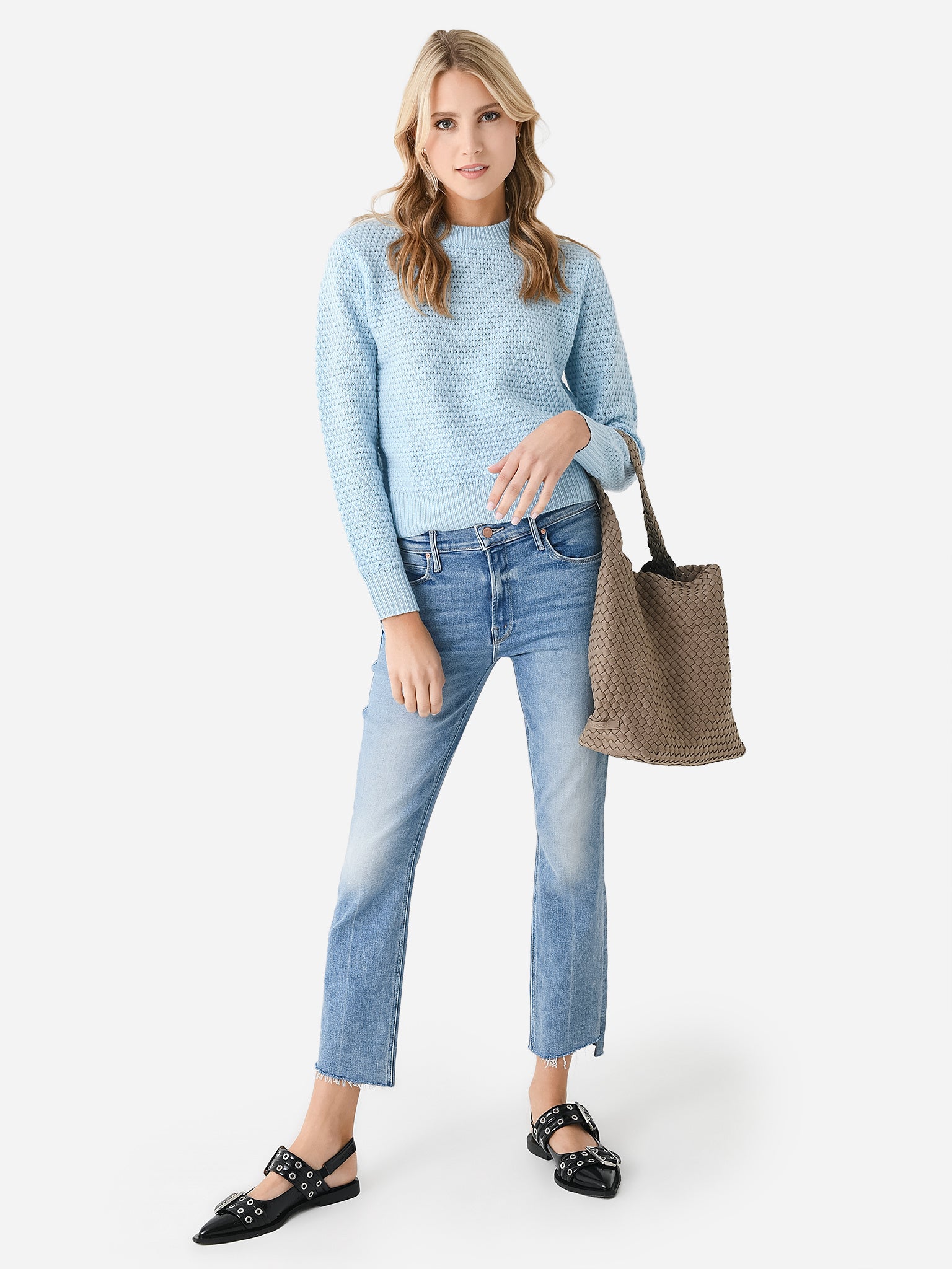 A luxuriously soft cashmere crewneck sweater made from a heavier textured knit.