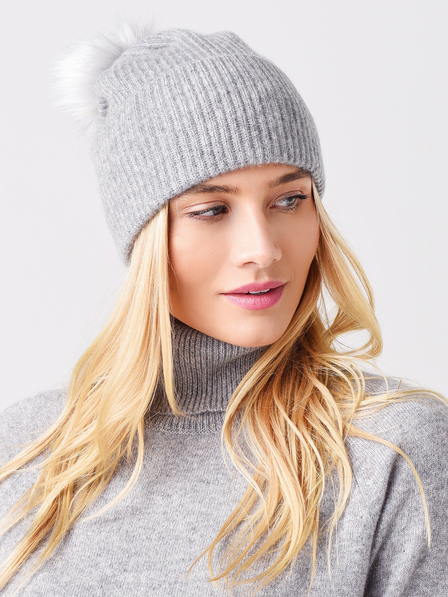 The White + Warren Women's Cashmere Turnback Ribbed Beanie will keep your head warm and top off your winter look perfectly.