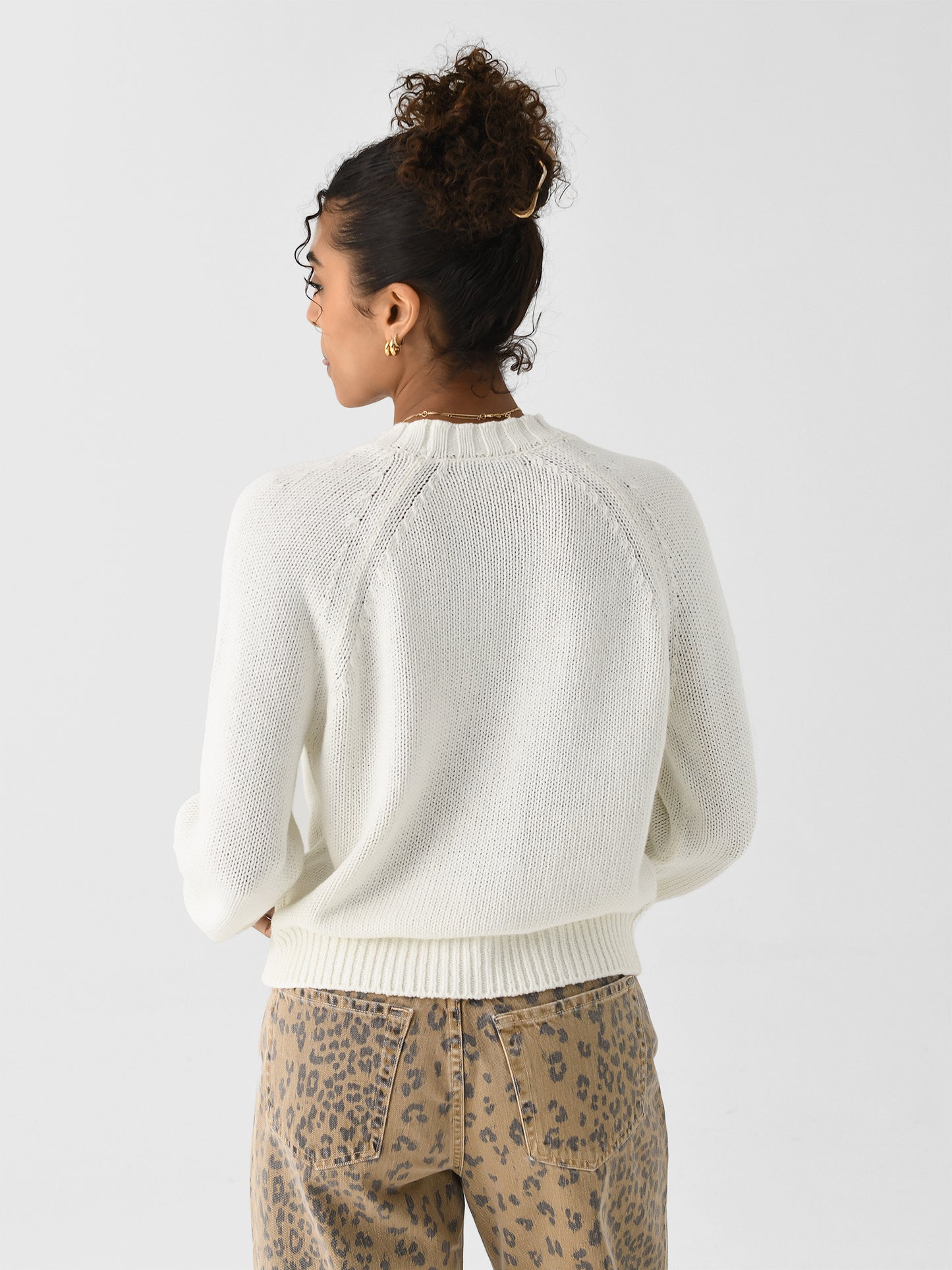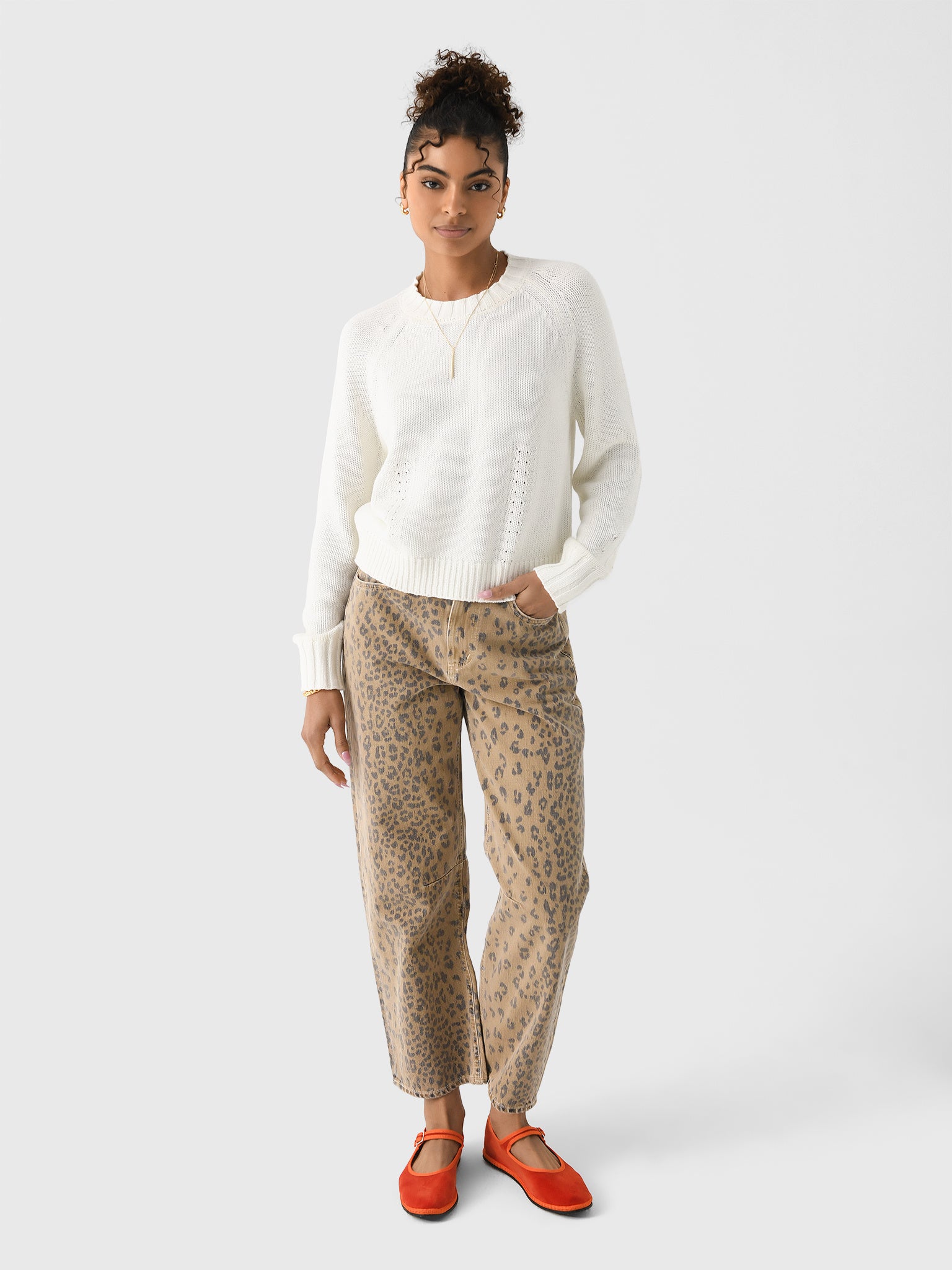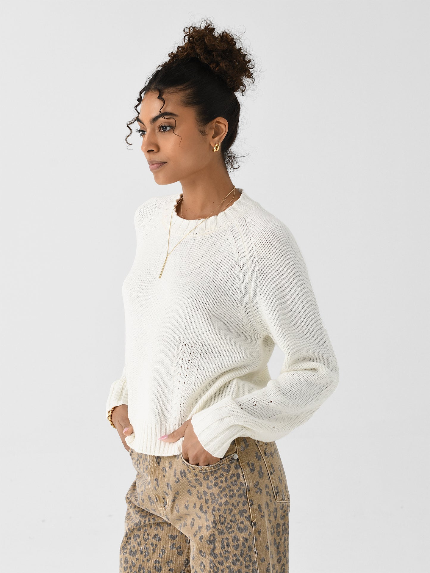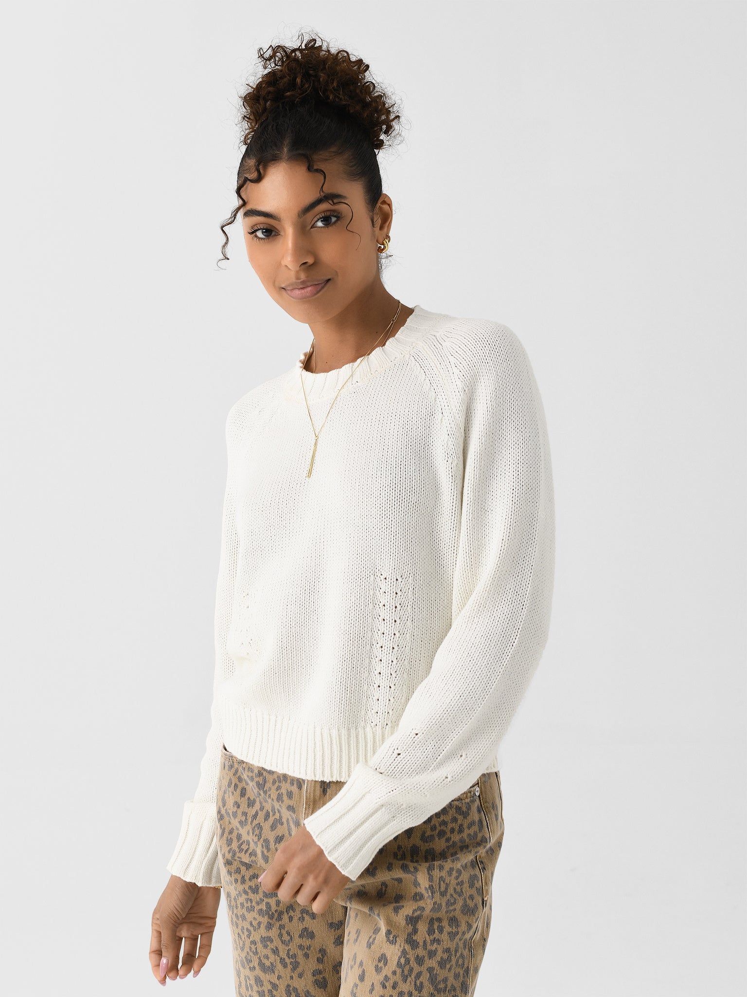 This casual crewneck is made from a soft cotton blend and features open-knit details and chunky ribbed trims.