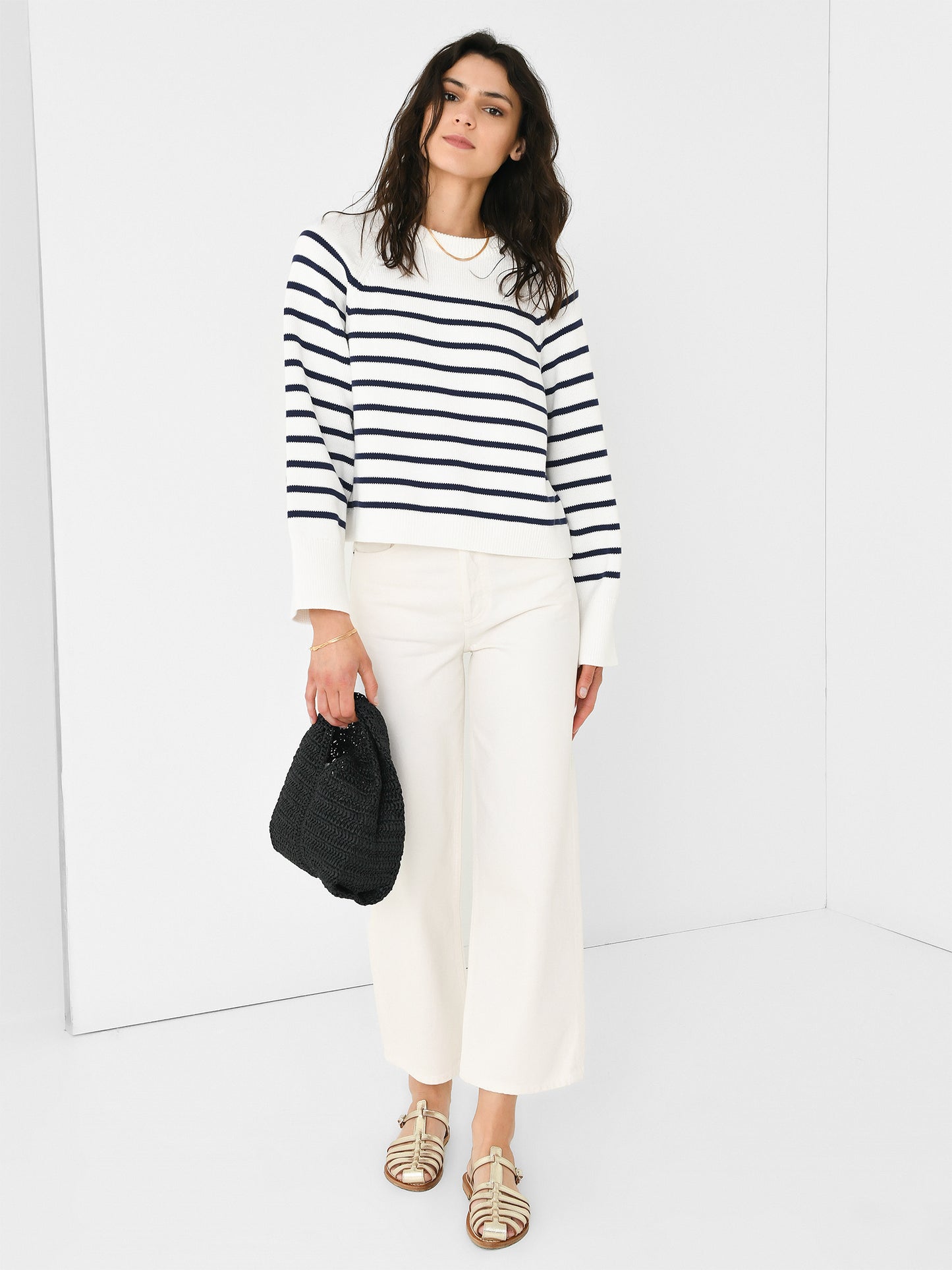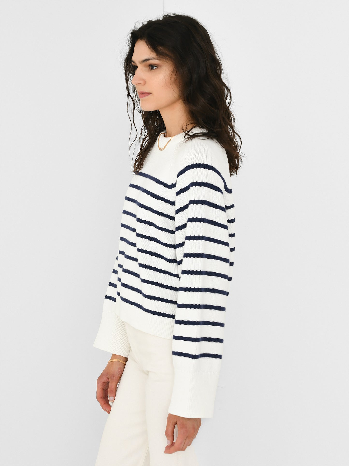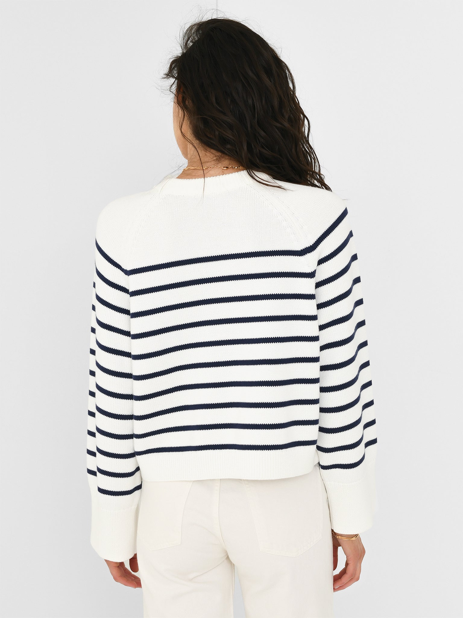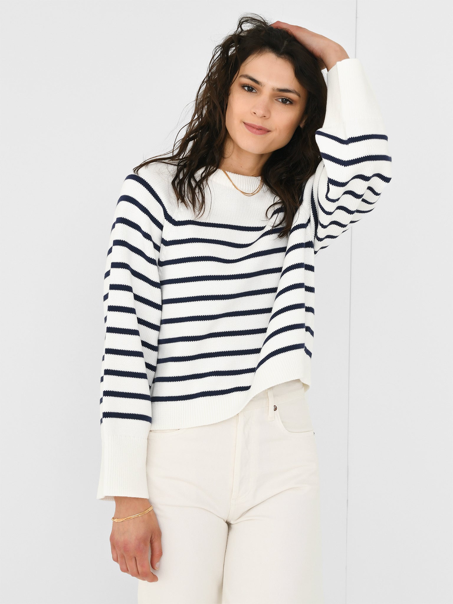 A soft striped sweater made from organic cotton with wide, raglan sleeves.