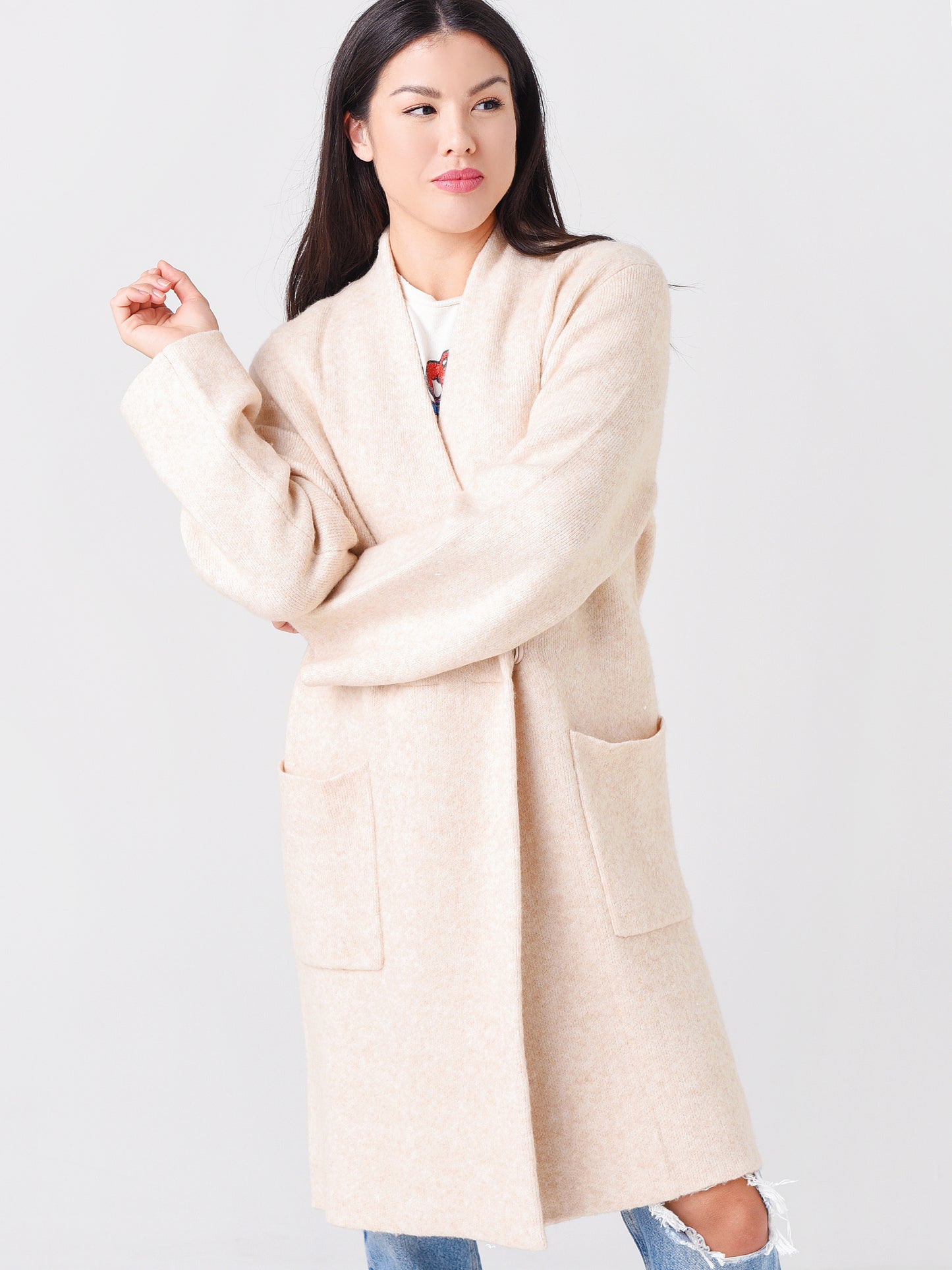 - Model is wearing size Small coat.