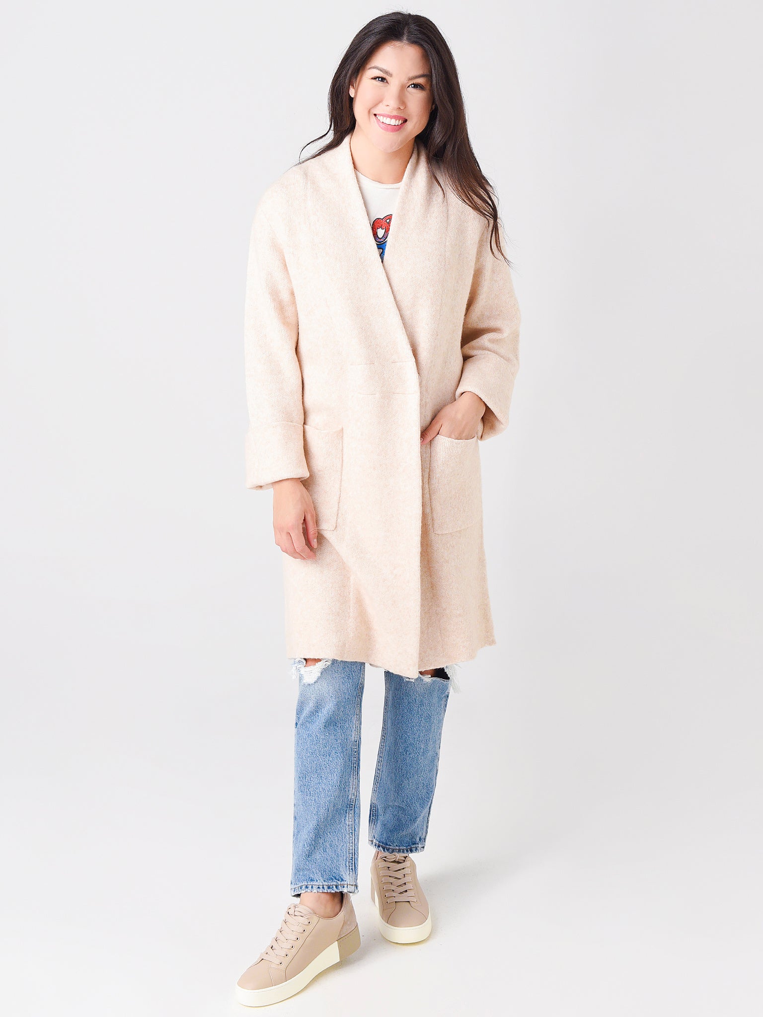 The White + Warren Women's Plush Melange Luxe Coat elevate any of your Fall staple pieces, perfect to cozy-it up this season.