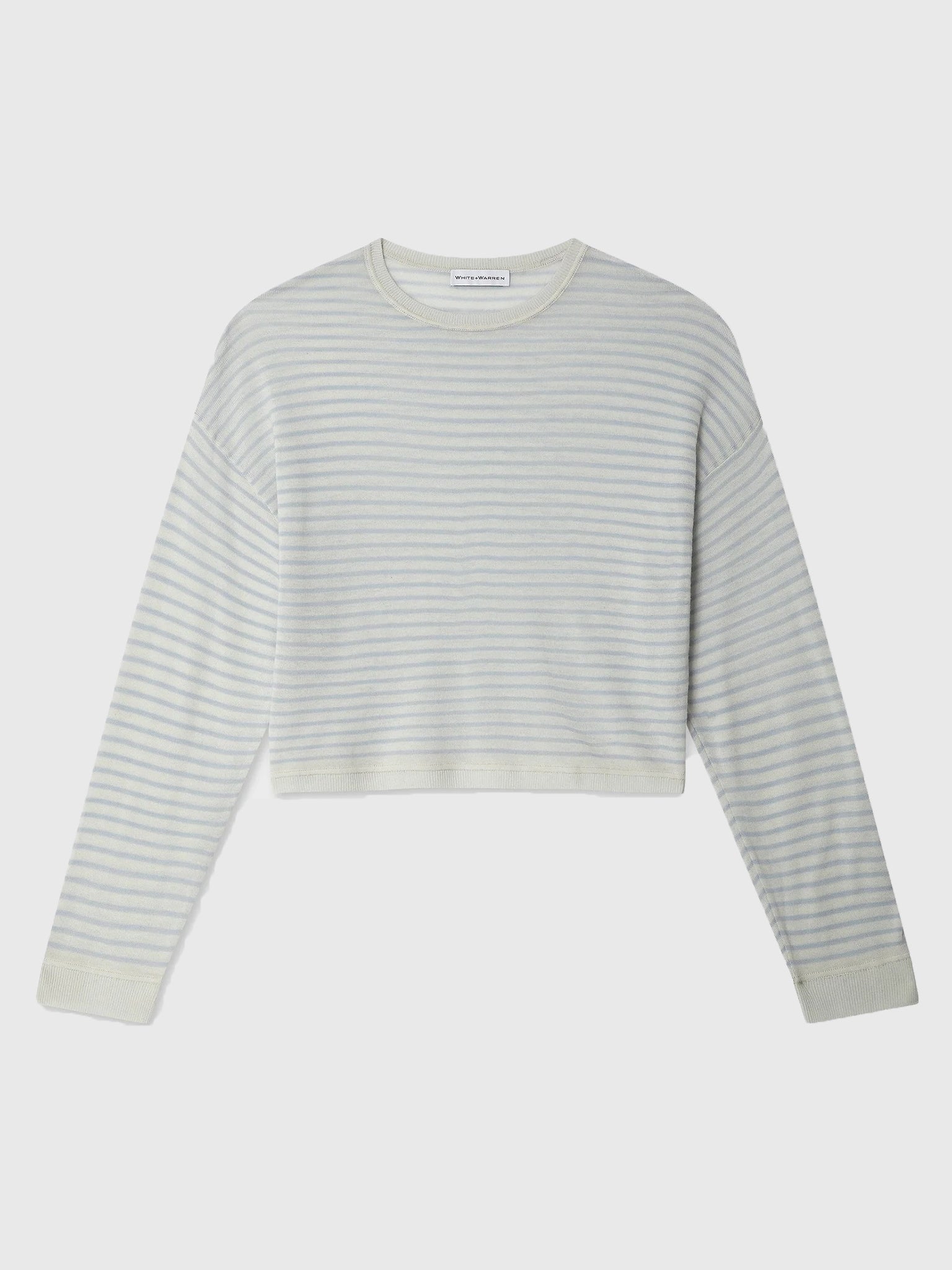 White + Warren Women's Superfine Cashmere Striped Sweatshirt