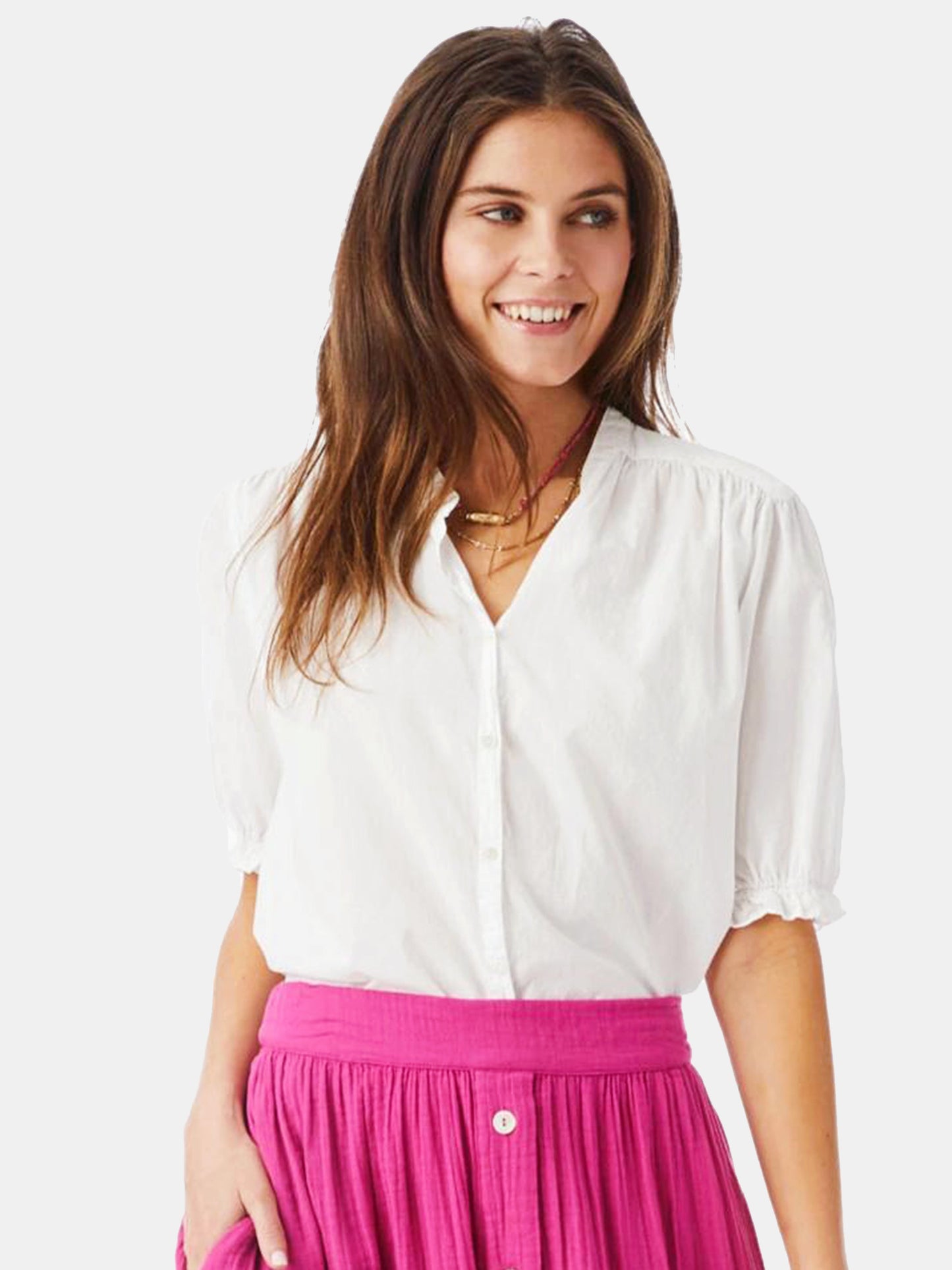 The Xirena Eden Shirt features fun ruffle detail at the sleeve.