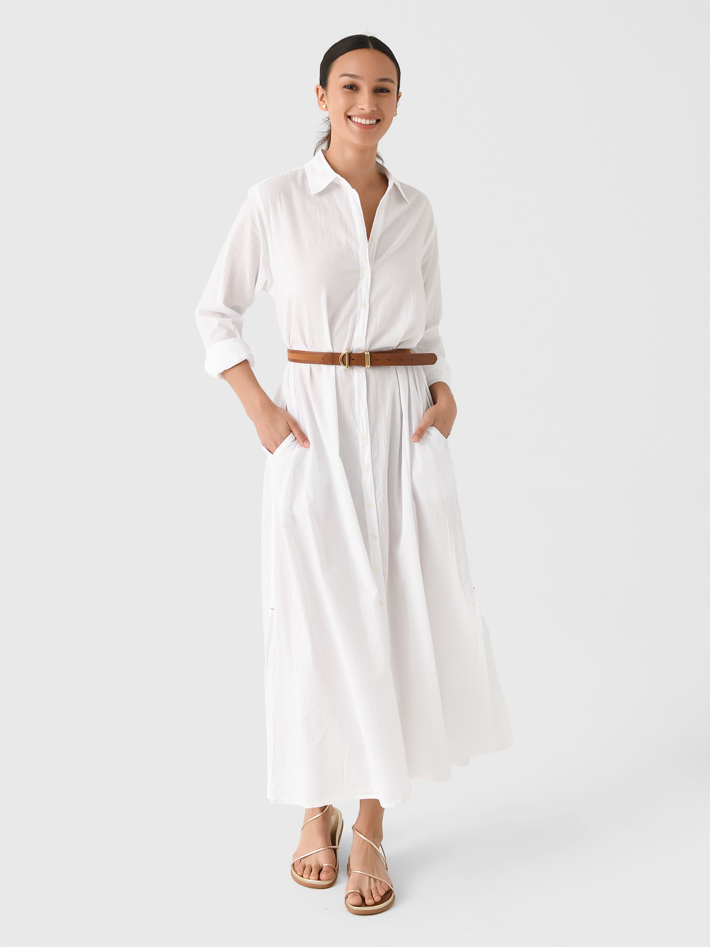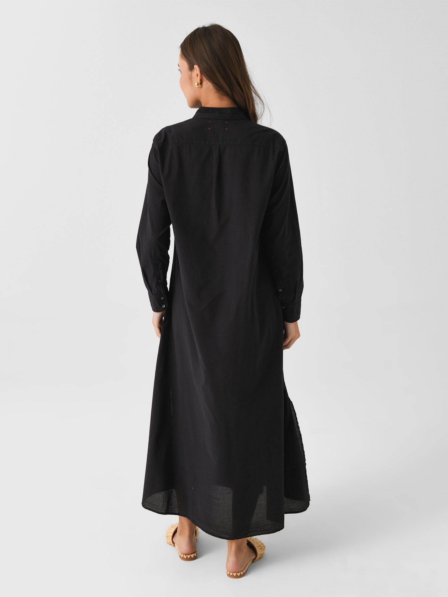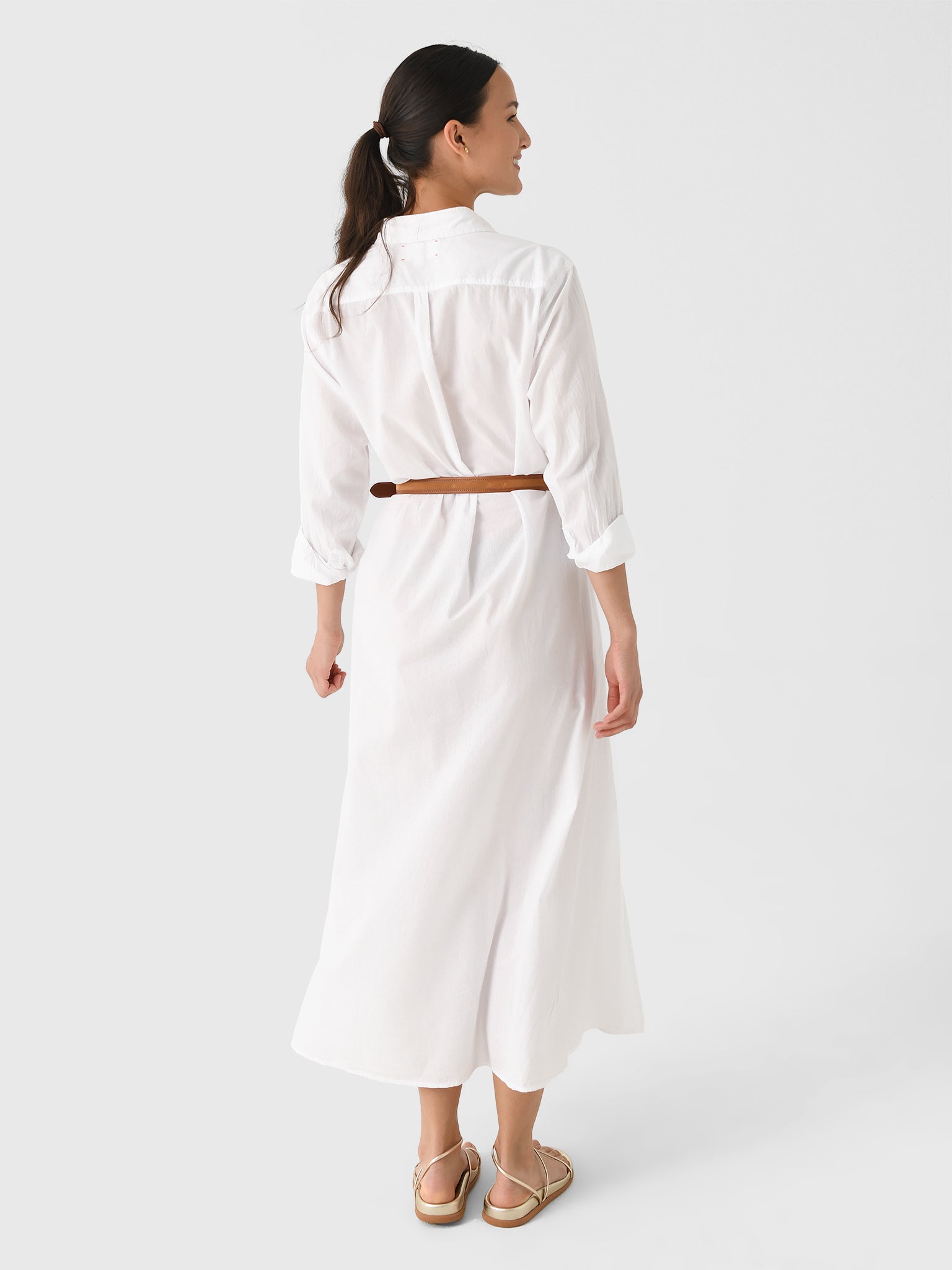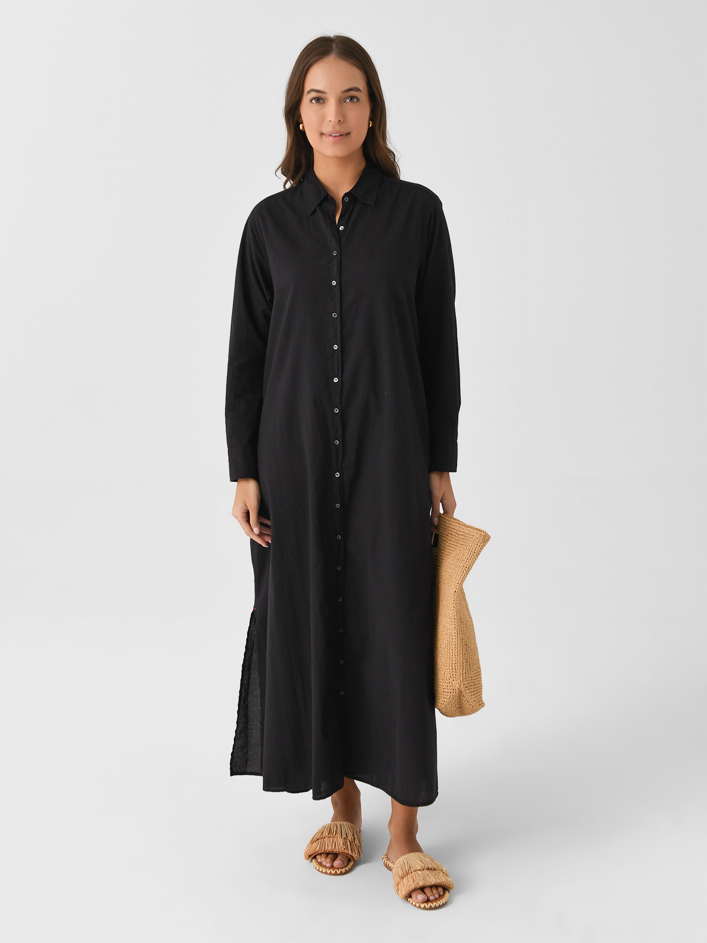A maxi-length shirtdress with a comfortable, relaxed design made from lightweight cotton.
