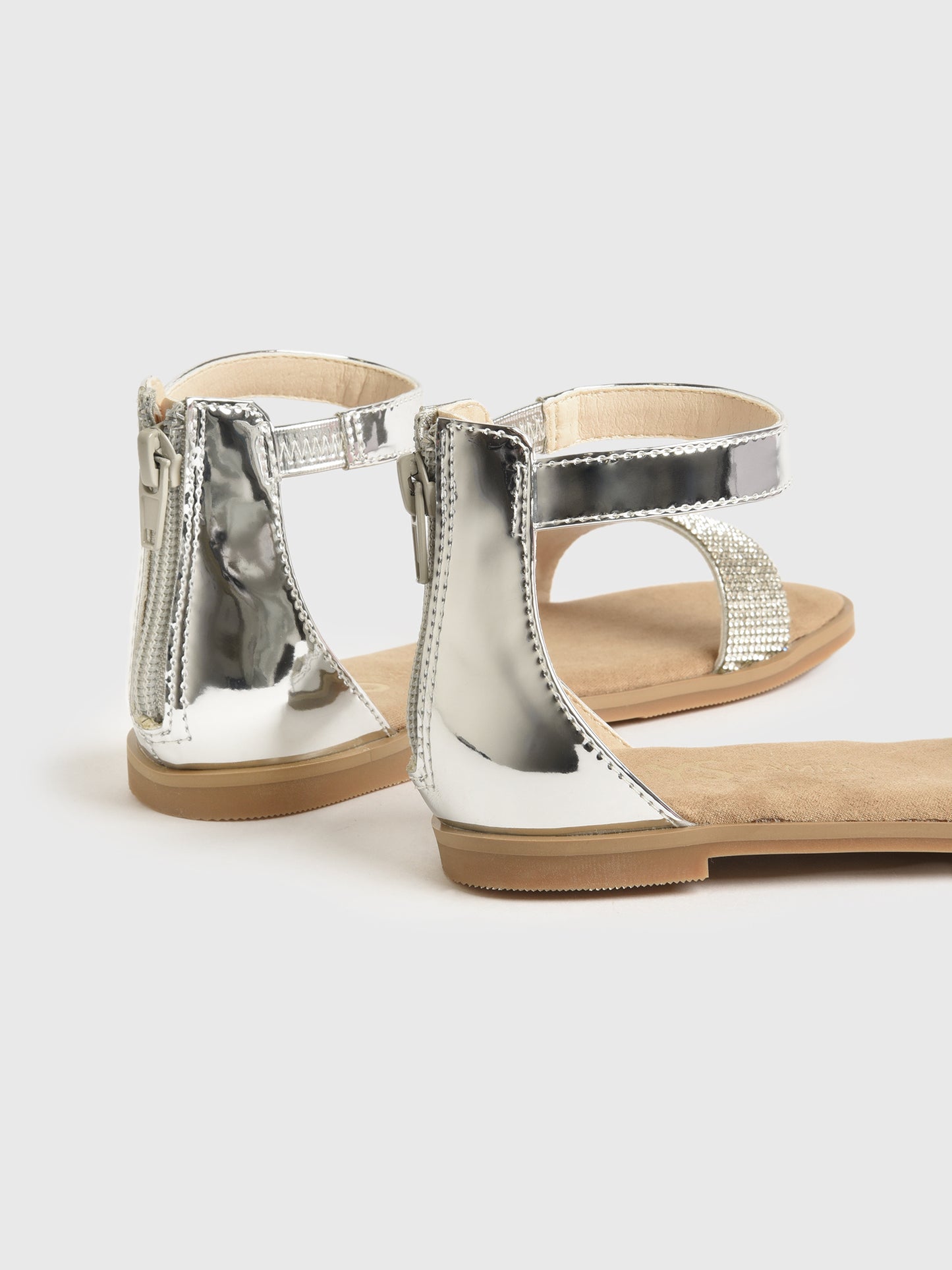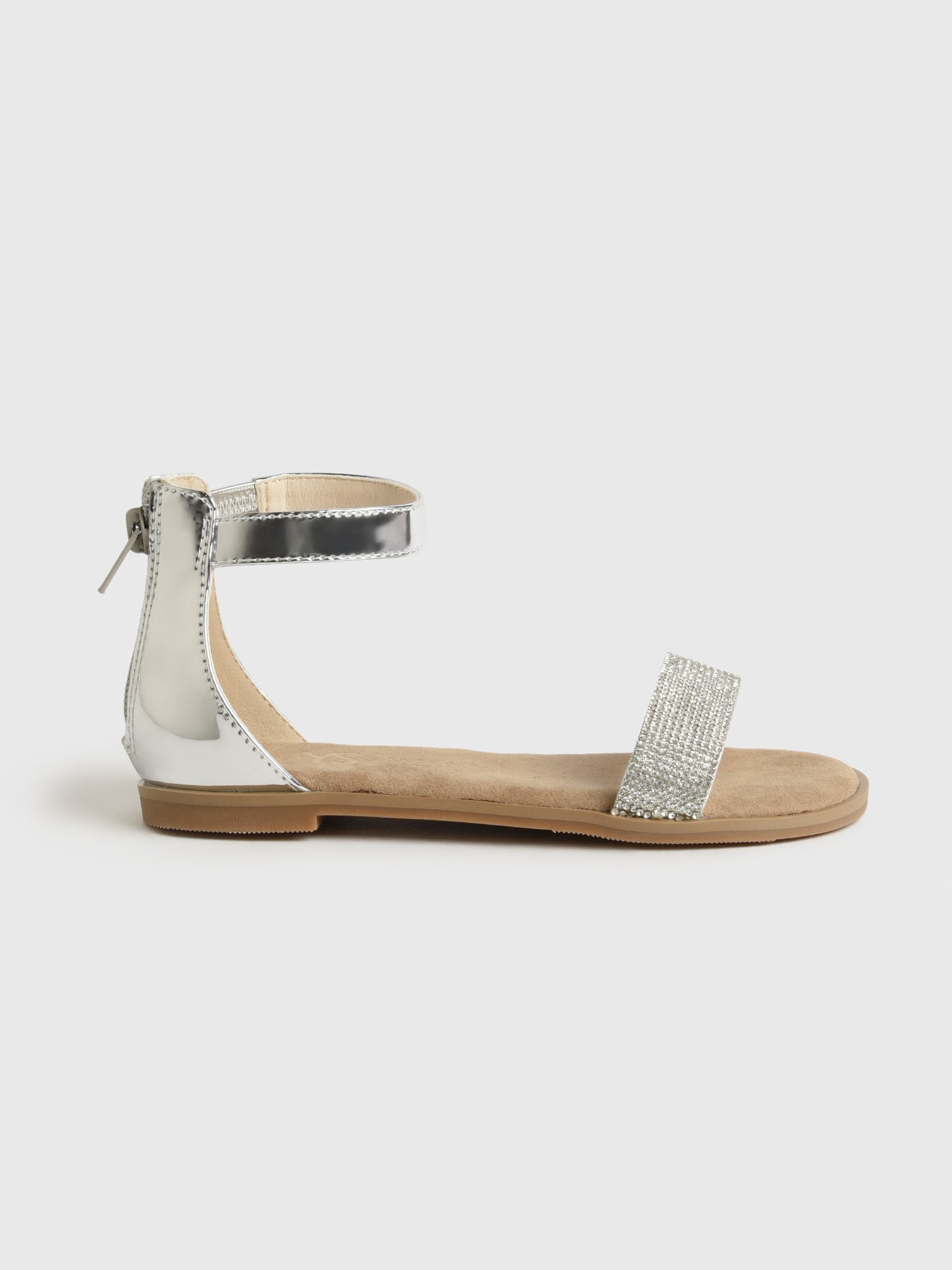 The Miss Cambelle Sandal adds a touch of glamour to any girl's outfit with its studded embellishments. This elegant sandal features an ankle strap, a zippered back, and a soft, comfortable sole.