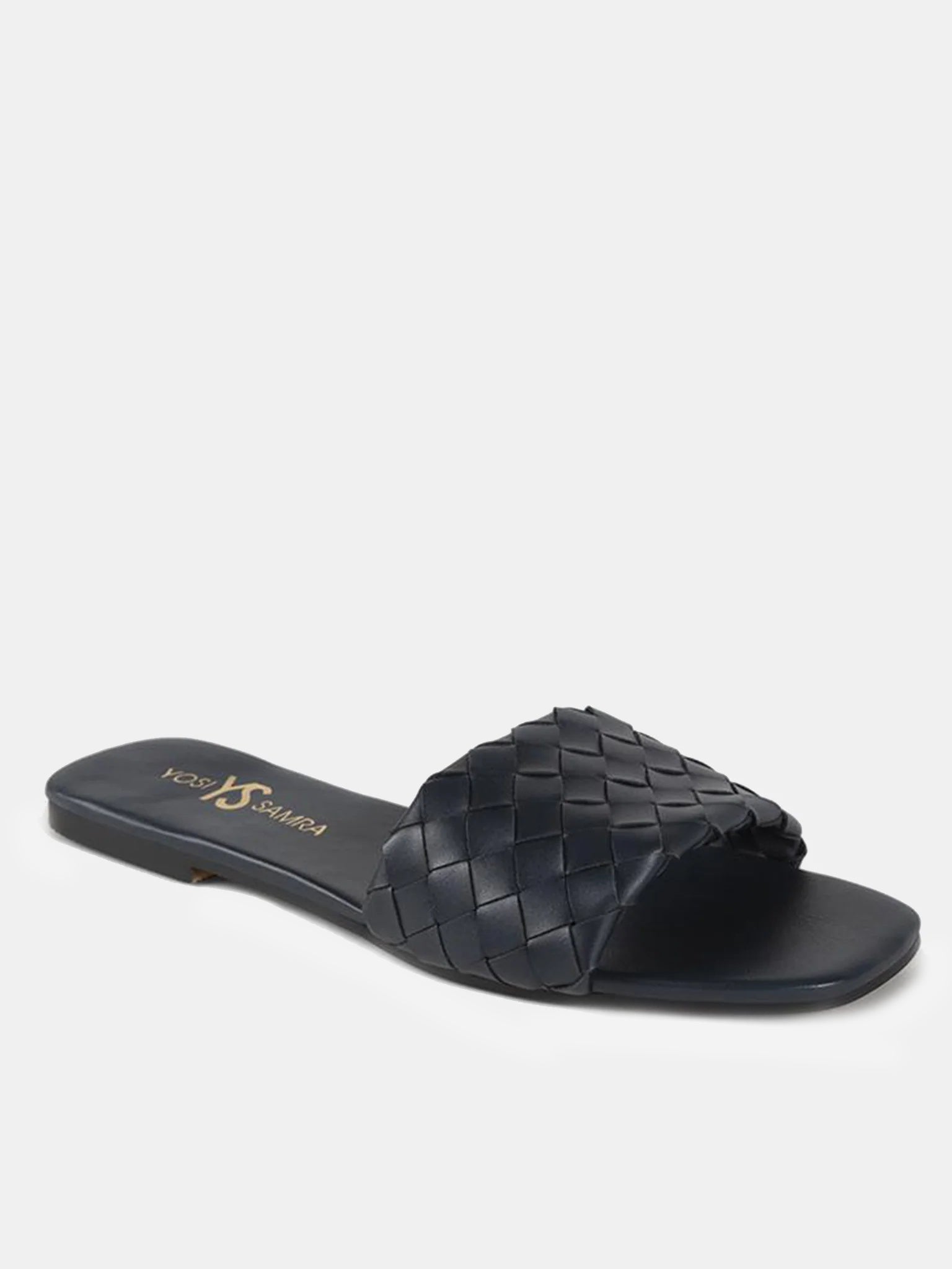 The Yosi Samra Women's Nathalie Sandal features a Vegan leather woven upper and a streamlined silhouette.