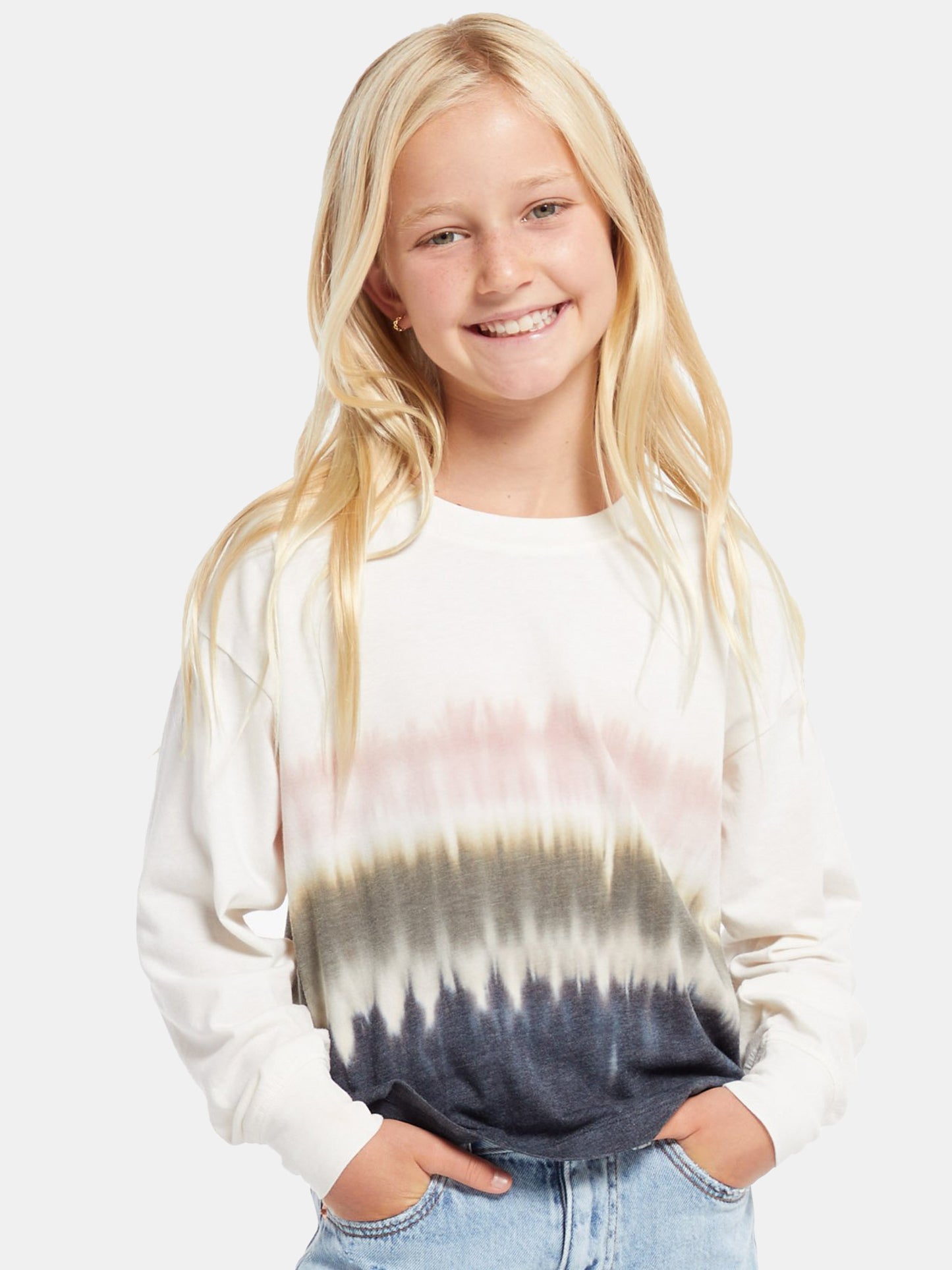 DESCRIPTION: The Z Supply Girls' Kaiya Dip Dye Long Sleeve Crew Top will take her from school to play to weekend fun in comfort and easy style.