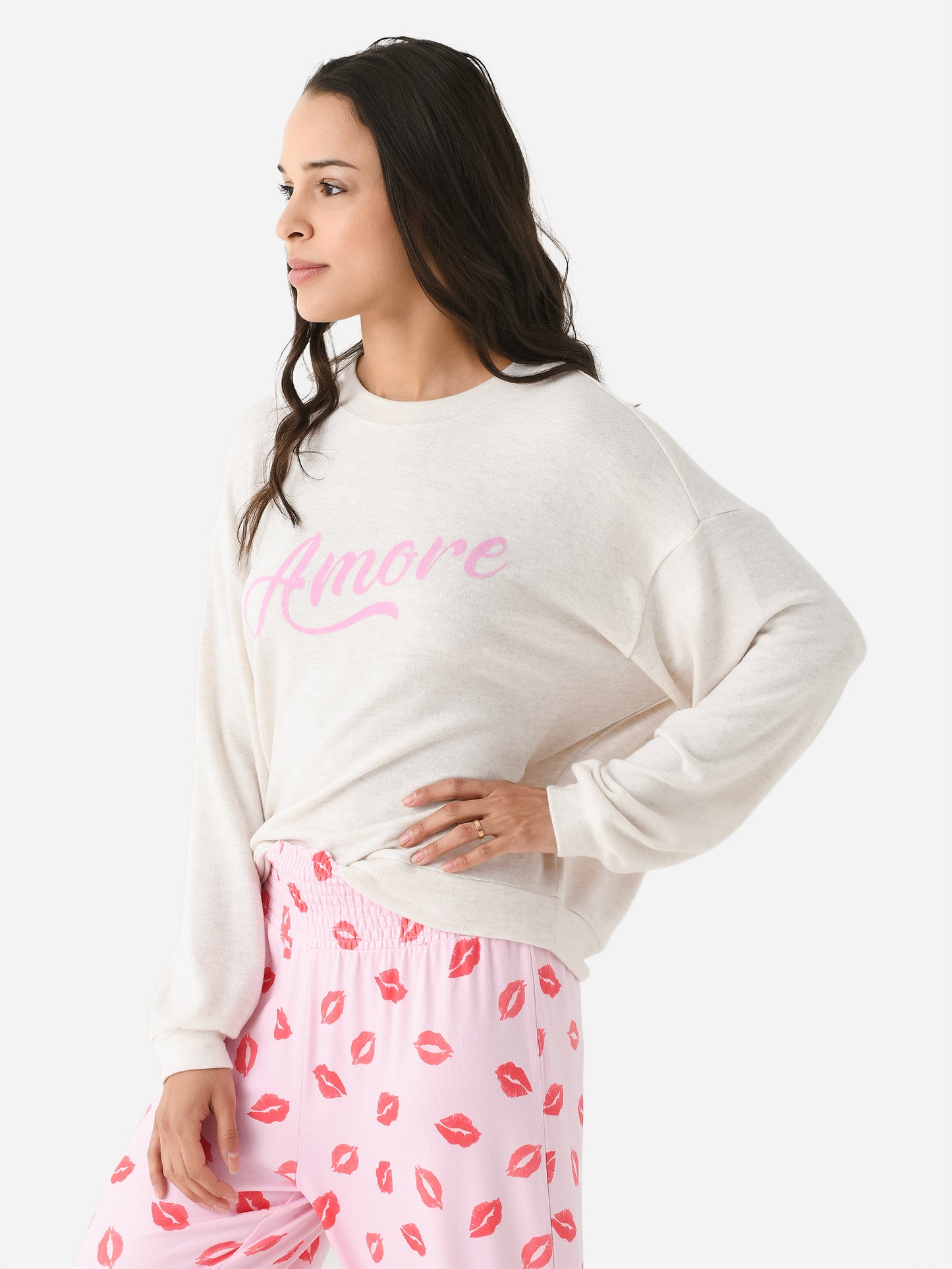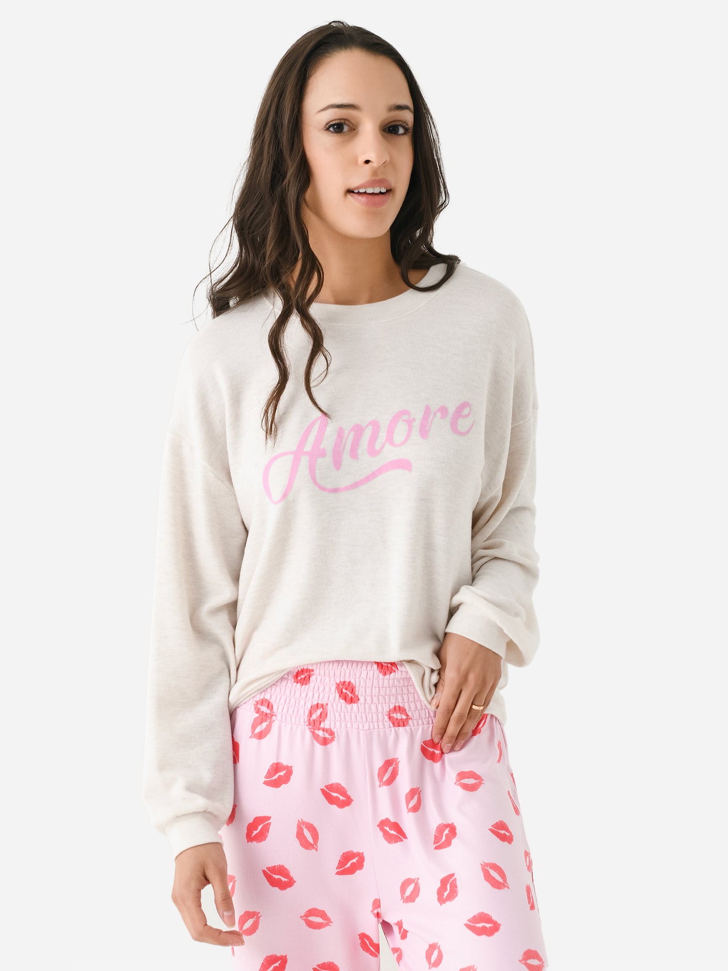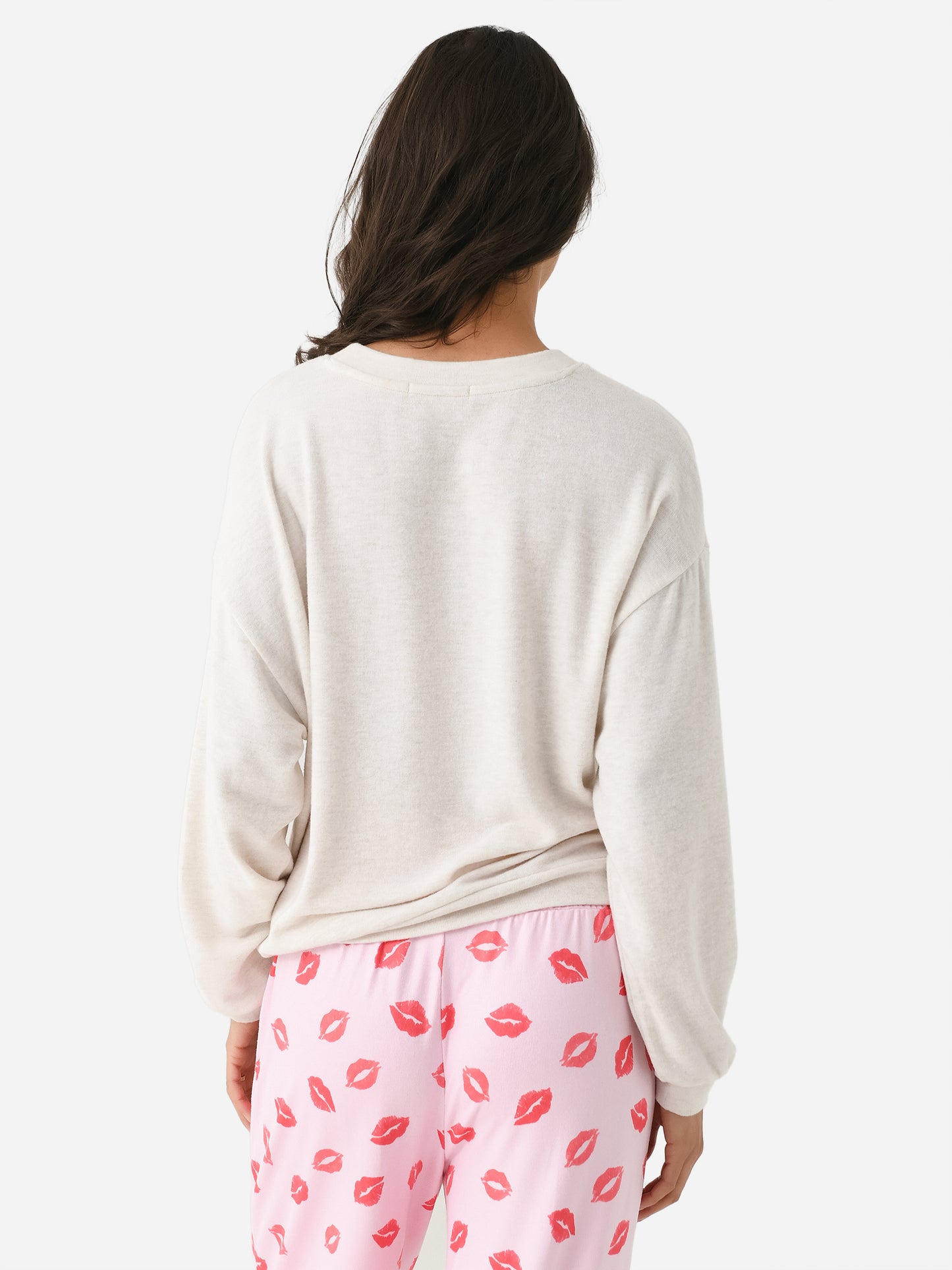 An ultra-soft and cozy long-sleeve top with a contrast front graphic.