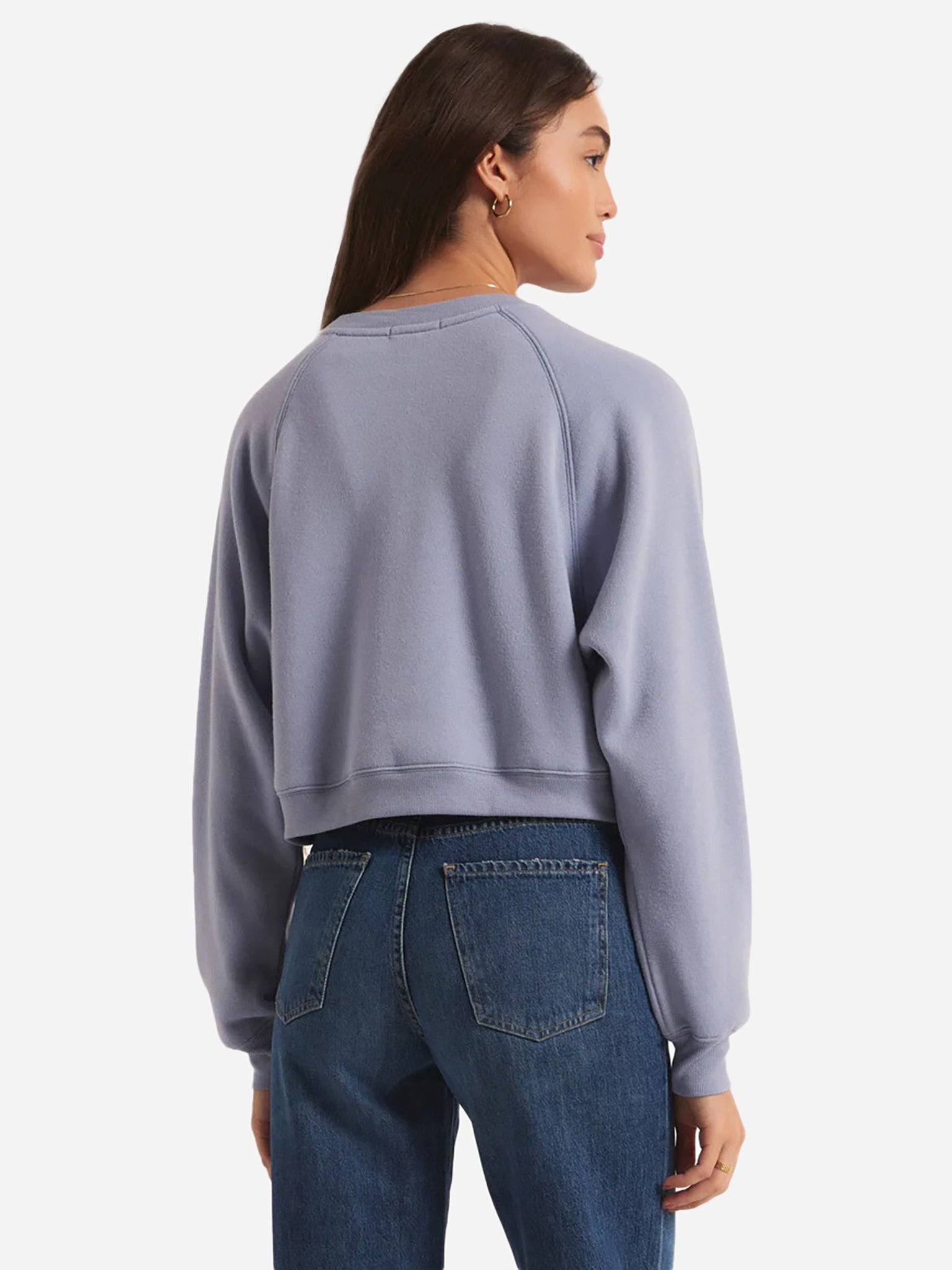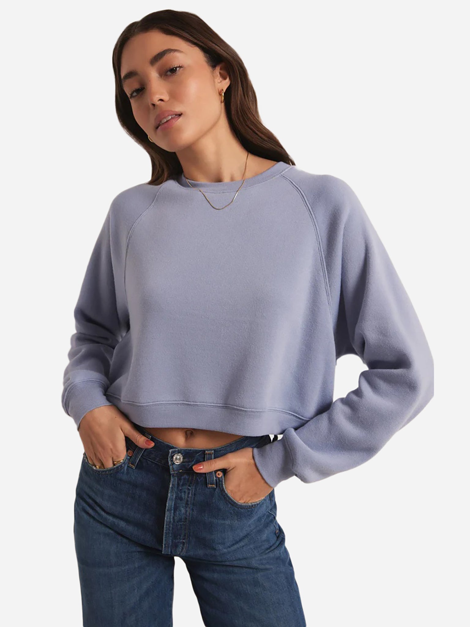 A cozy fleece sweatshirt with a slightly cropped silhouette.