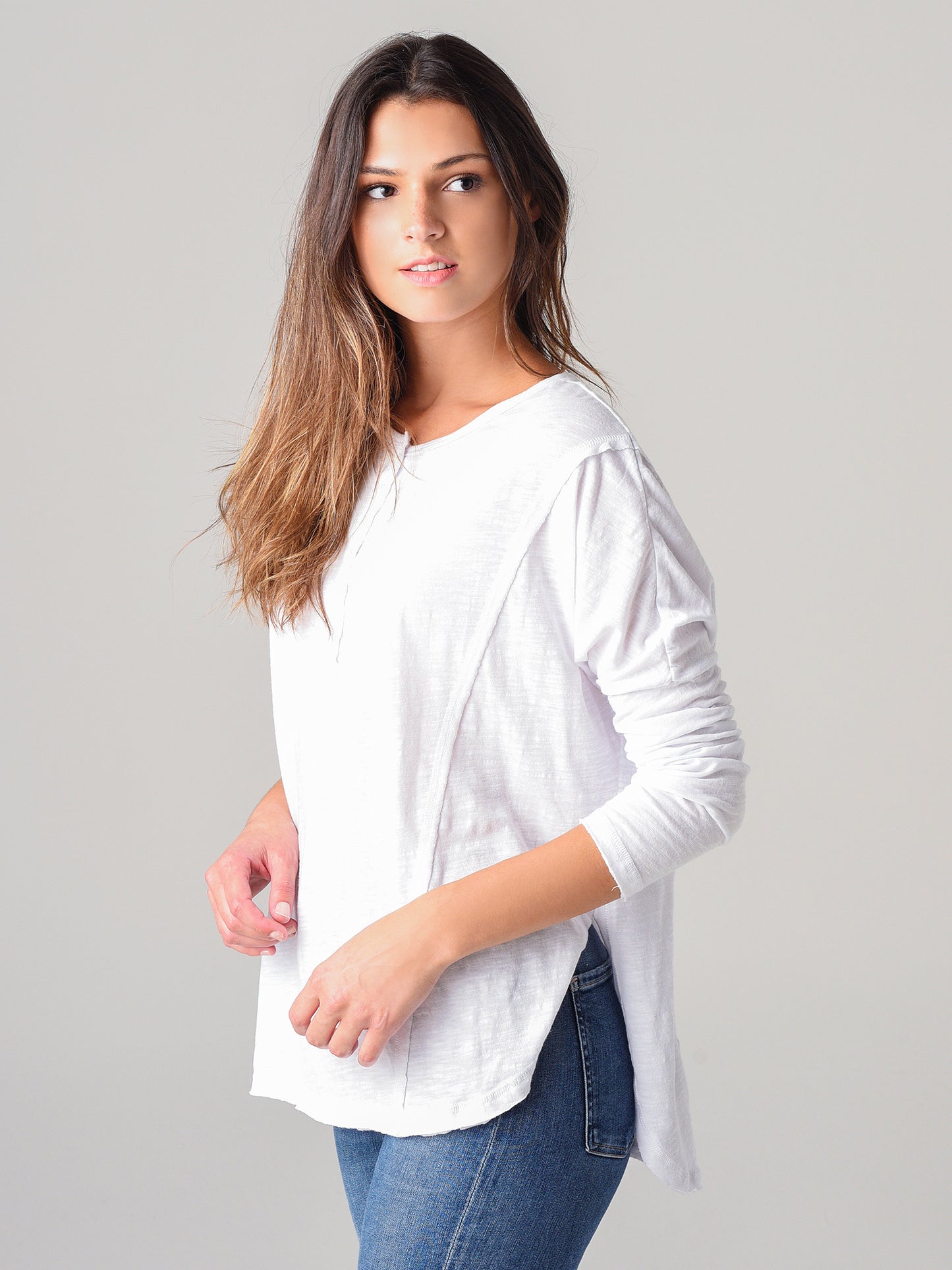 - Extra Long Rounded Hem with Side Slits