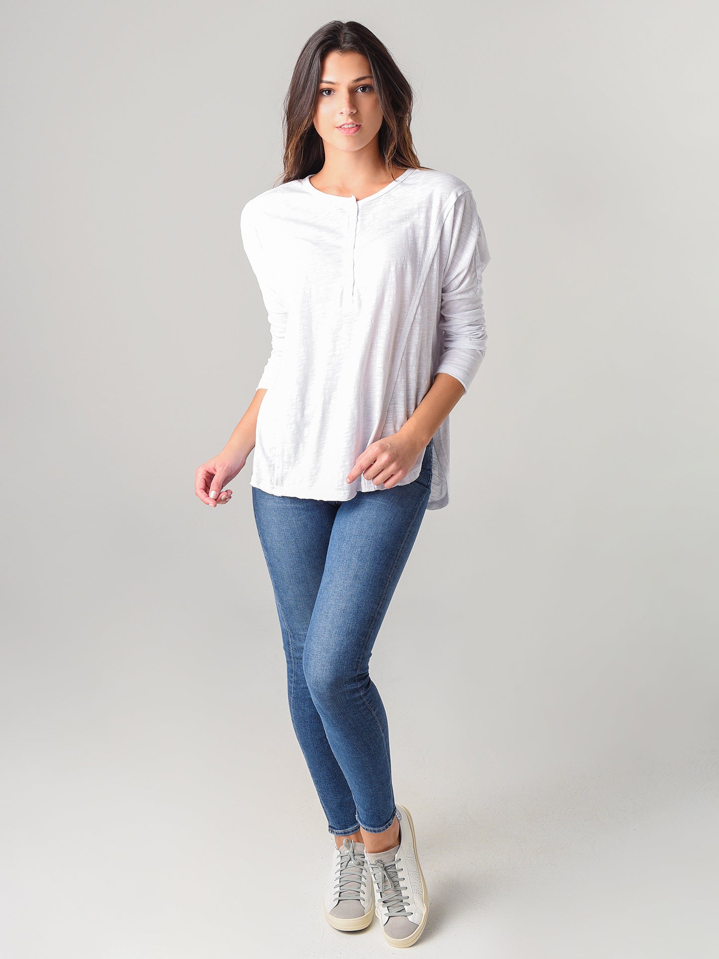 - Crew Neckline with Henley Button Placket